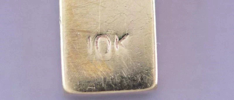 The pendant is stamped 10k on the back and on the inside of the bail as well.