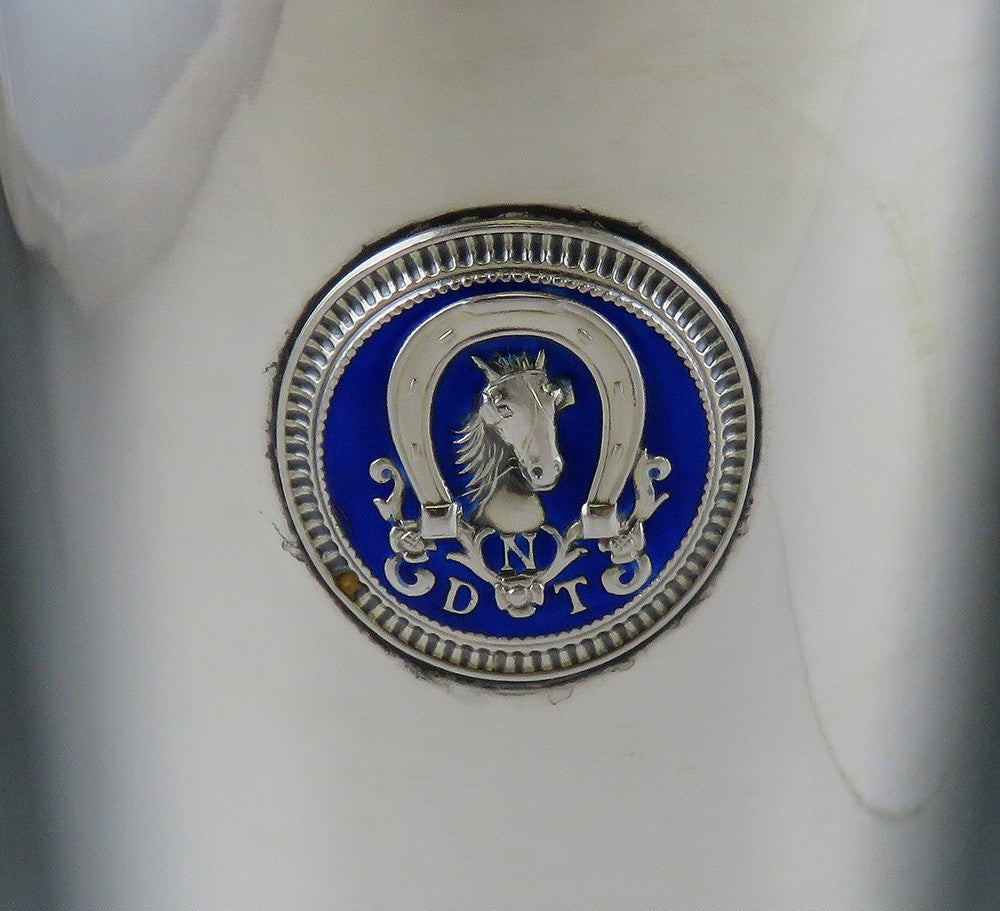 Norwegian Silver Det Norske Travselskap Horseracing Trophy Cup w Blue Enamel