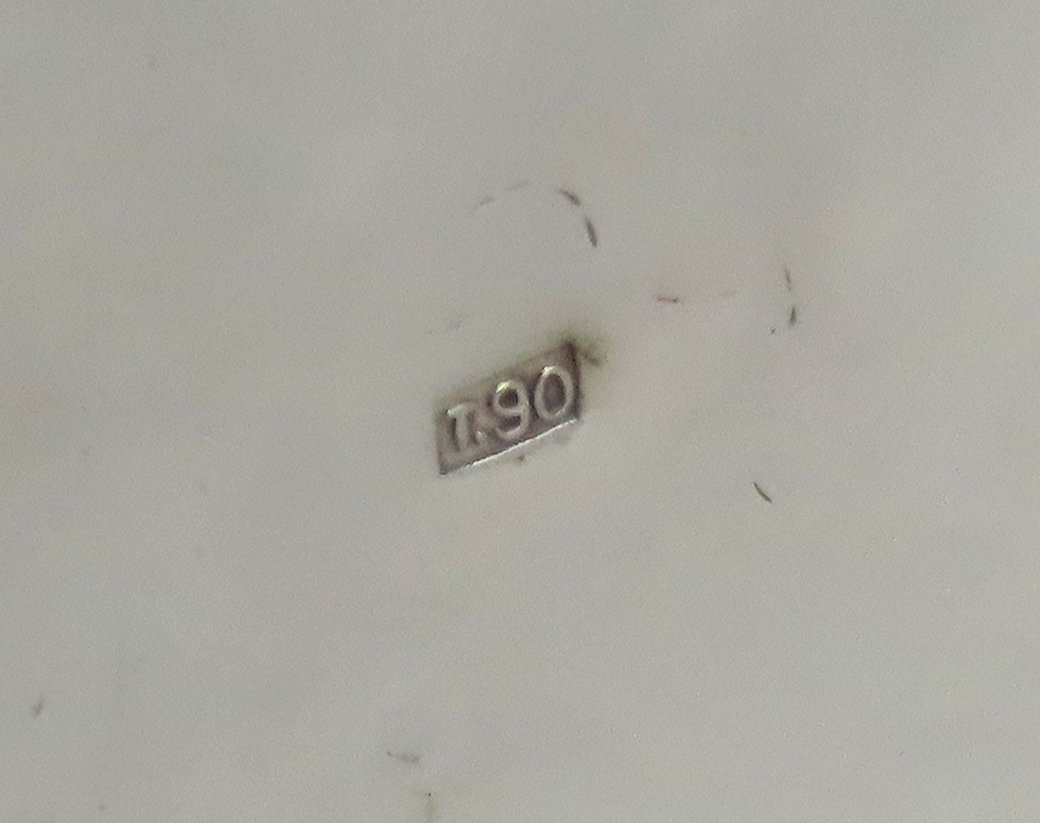 This piece is in great overall condition. The teapot has some solder repairs near the base of the handle and around the spout. There's also solder marks around the pattern. Most of these solder marks are hard to notice without close, careful inspection, due to how busy the pattern is.