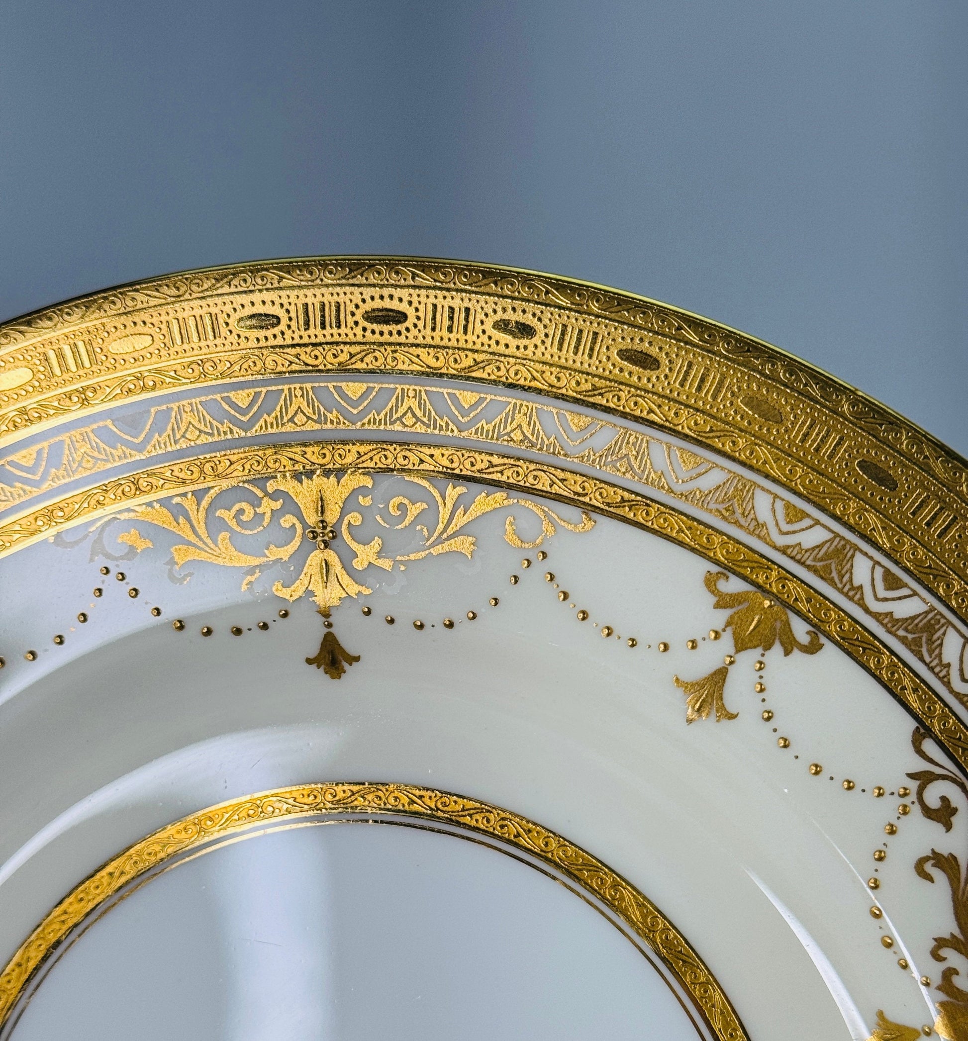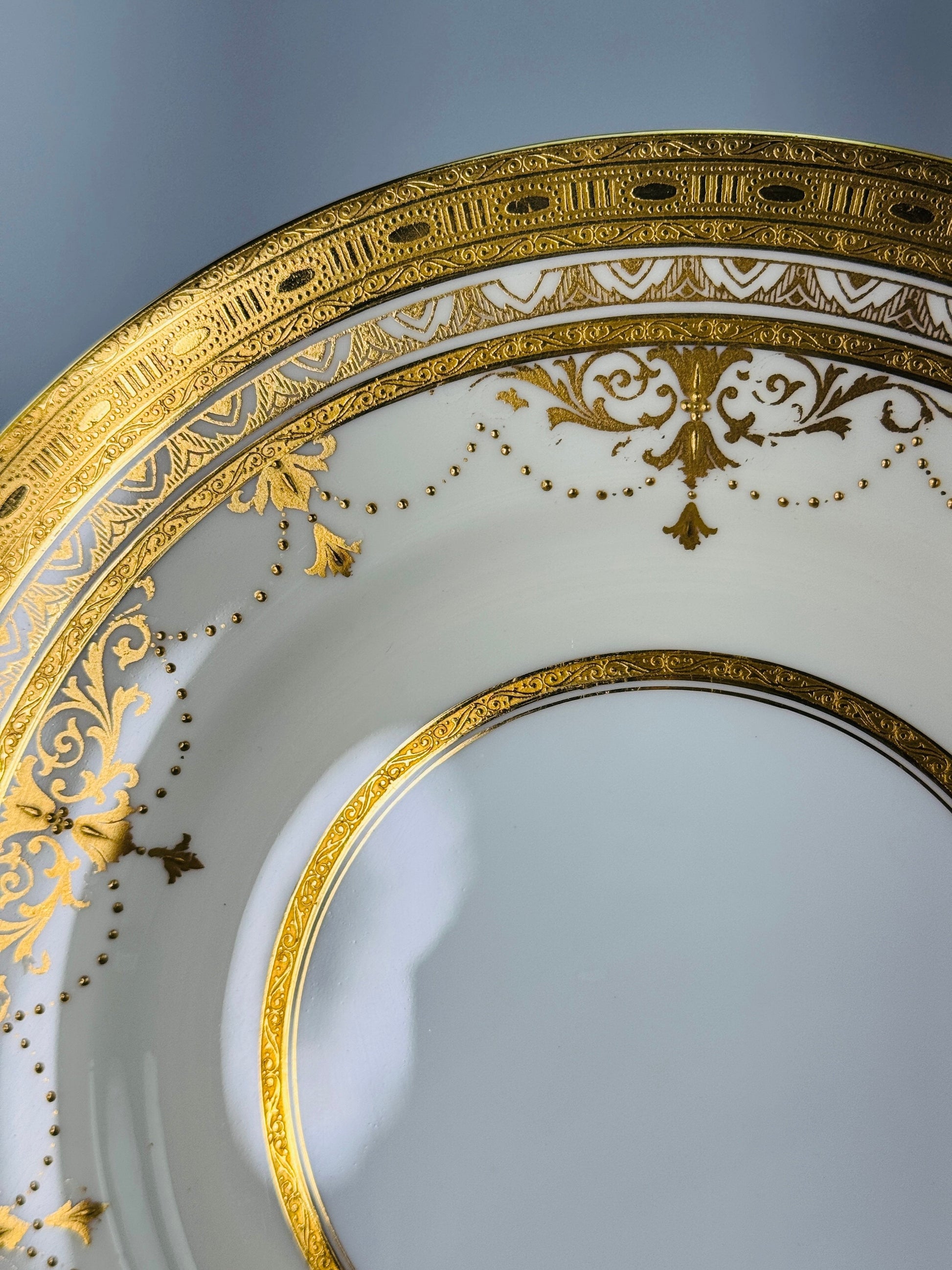 This set is in excellent condition. The gilding is in great shape. There are no chips, no cracks, no breaks, and no repairs.