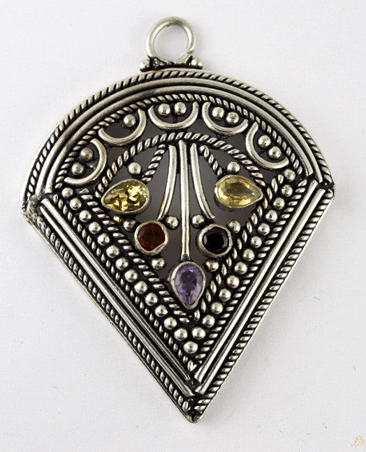 Ornate Sterling Silver and Amethyst Citrine Gemstone Pendant