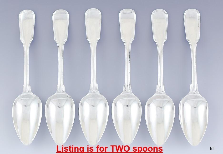 Pair 1873 Dutch Table Serving Oval Soup Spoons 934 Silver w Neat Crest 8.25"