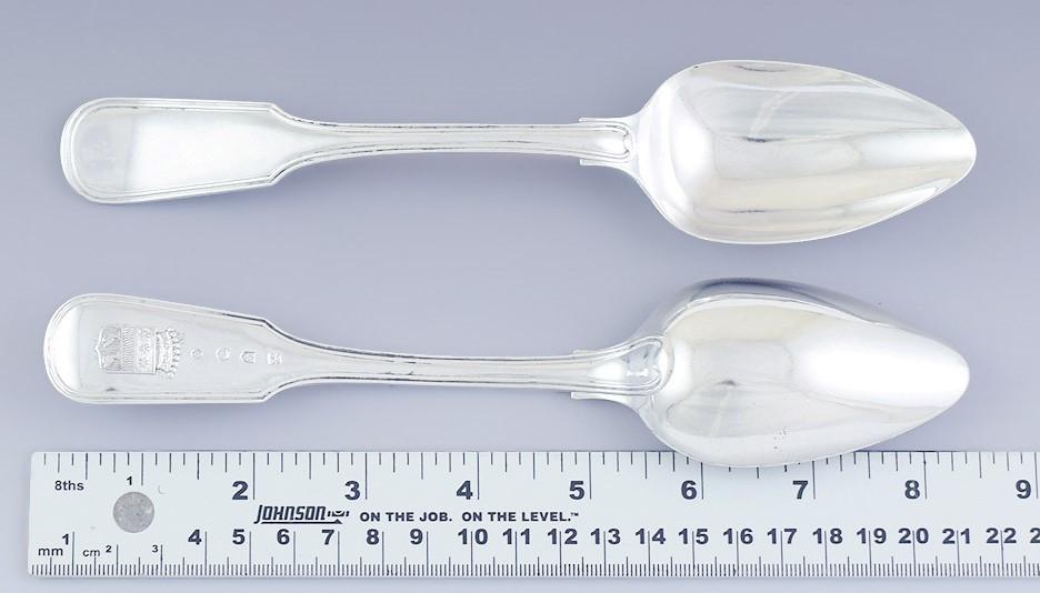 These spoons are in excellent condition. There are no splits, no dents, no breaks, no monogram removals, and no repairs.