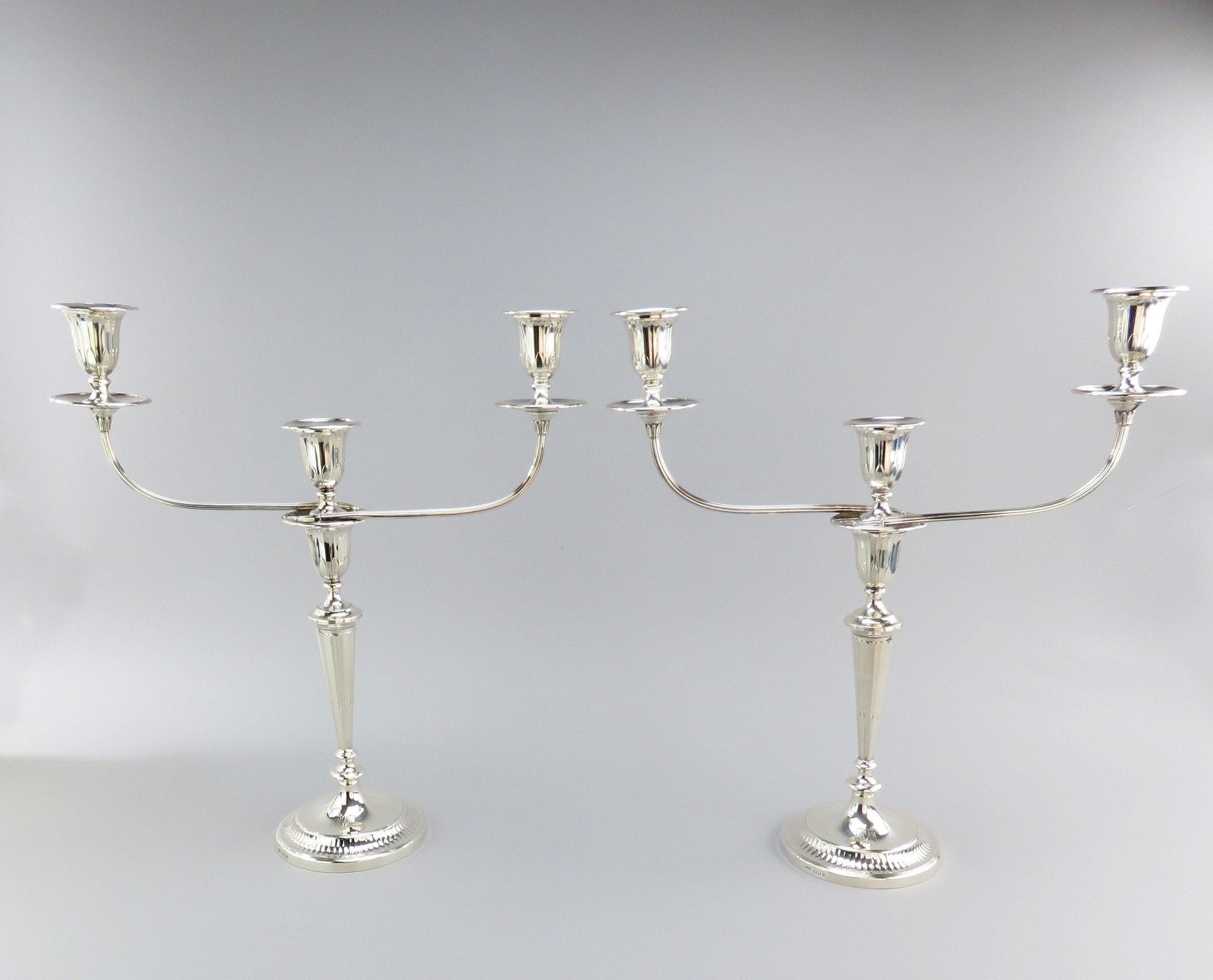 Pair 1931 English Sterling Silver Vanderbilt Estate Convertible Candelabra 18"