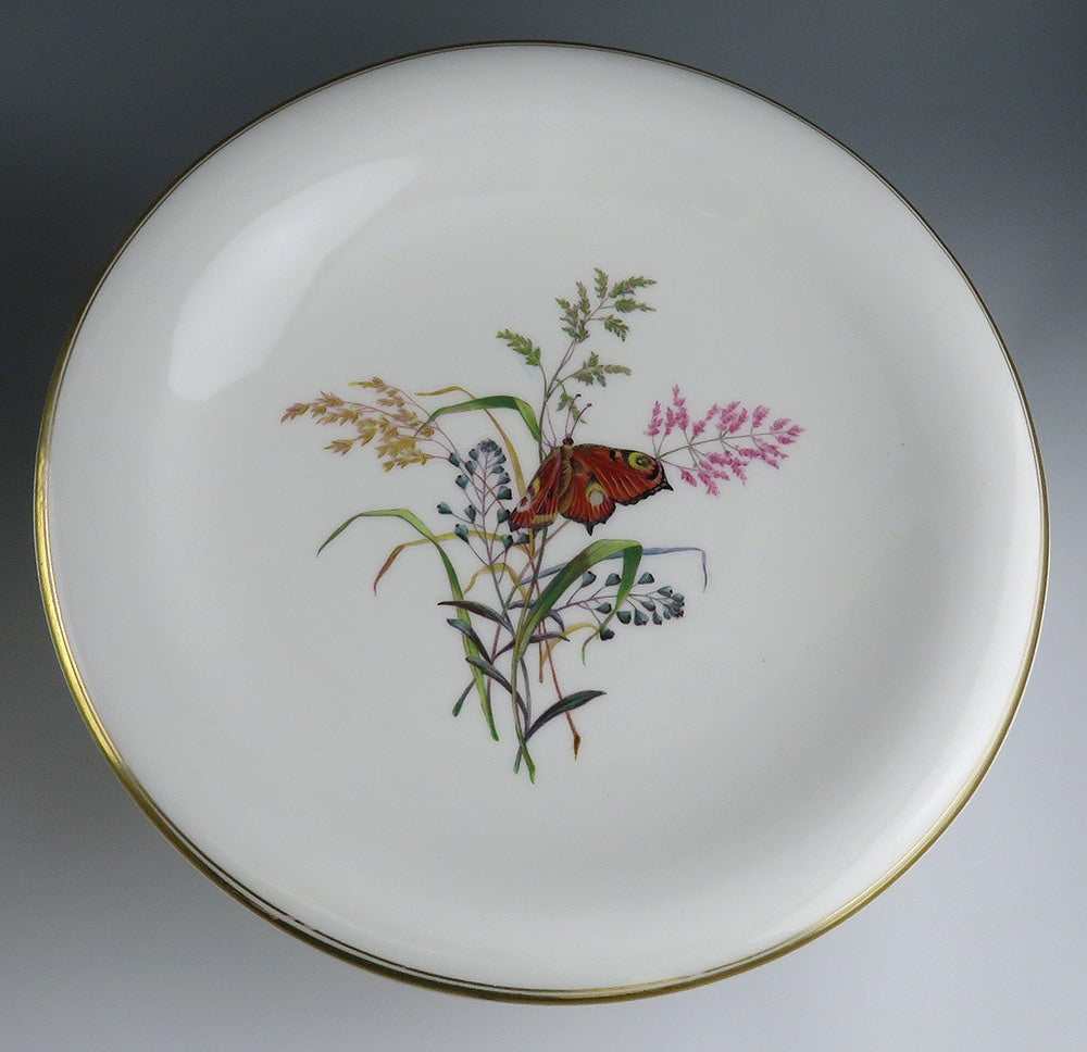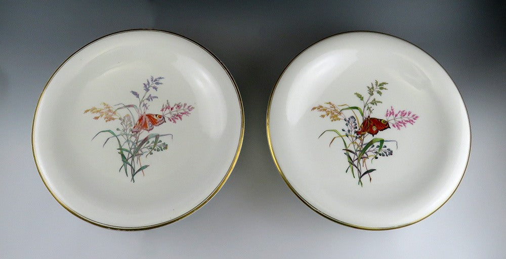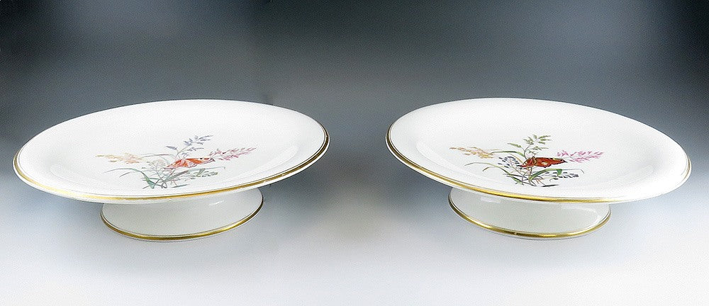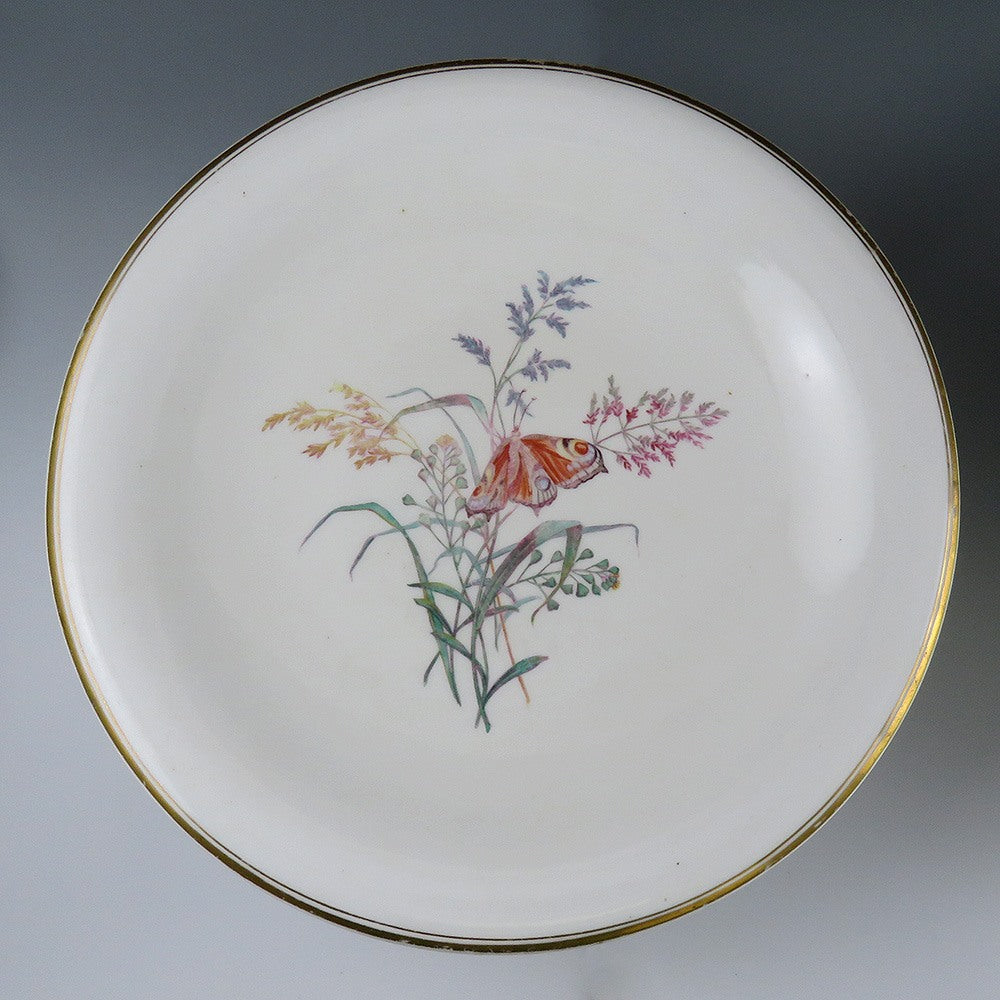 Pair Antique c1870s Copeland England Cake Stands Compotes Butterfly Wild Grasses