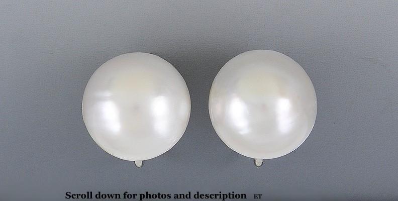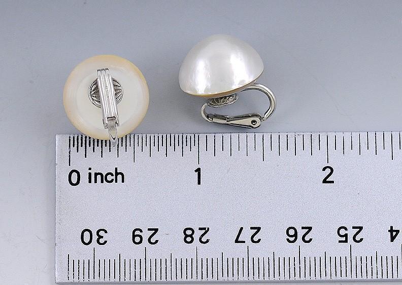 Pair Large 14k White Gold & Mabe Pearl Dome Earrings