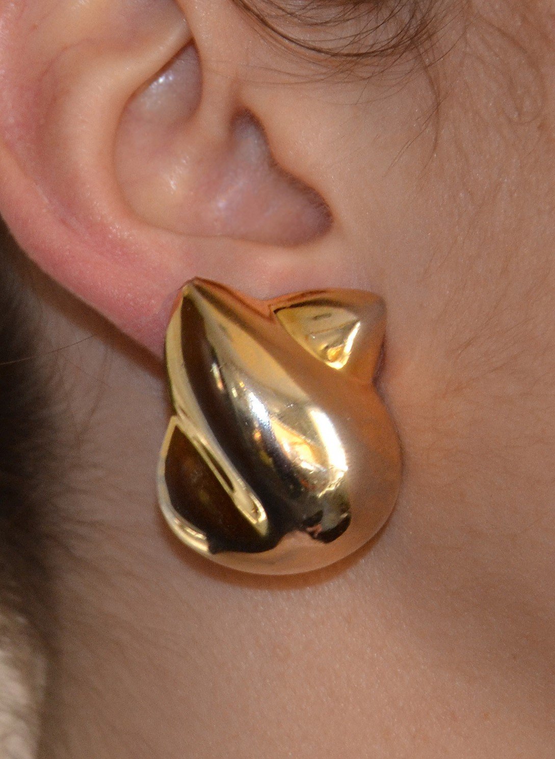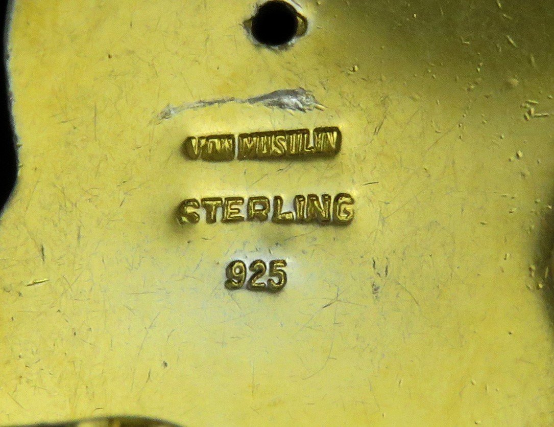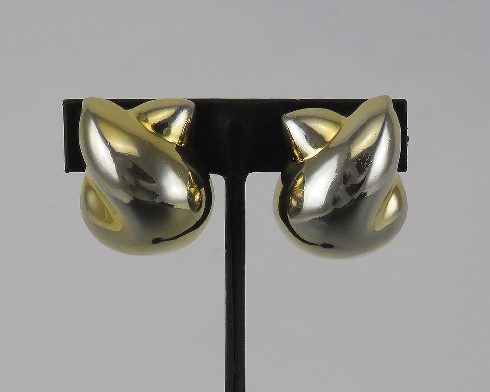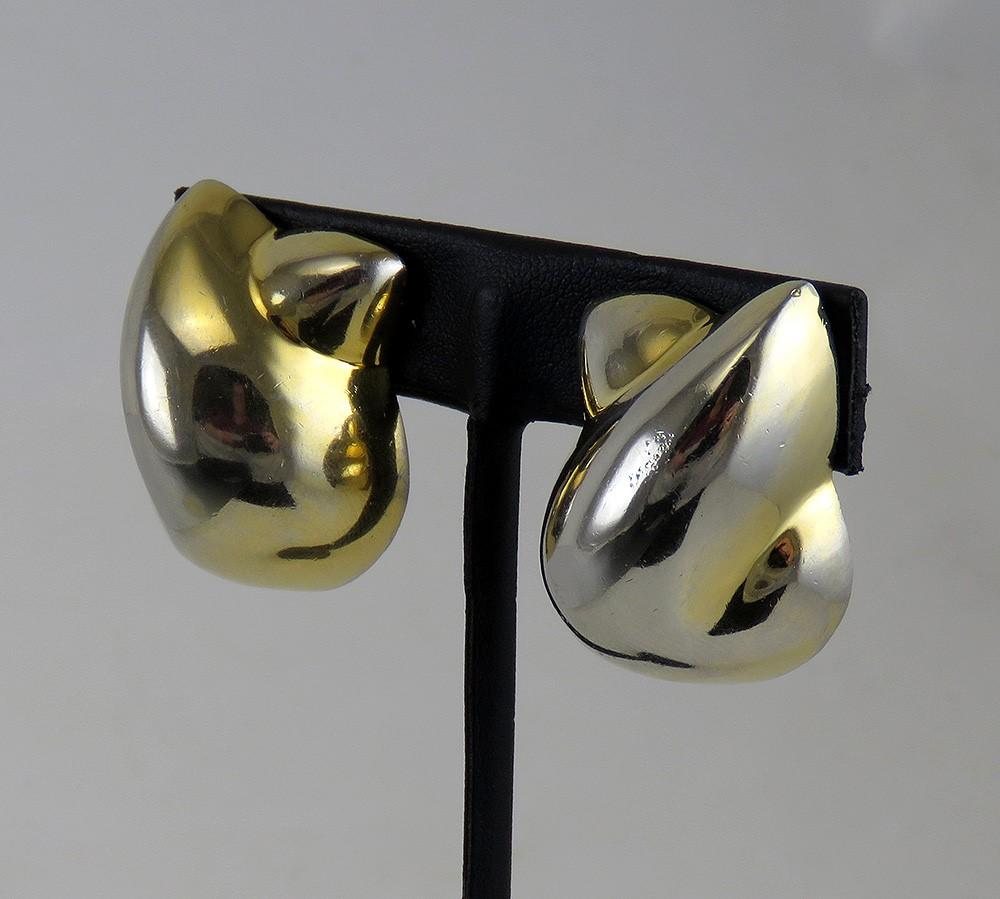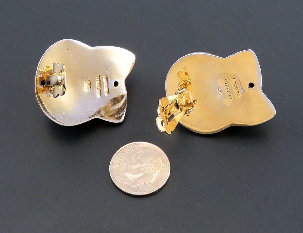 Presented is a vintage pair of sterling silver clip on earrings made by Patricia Von Musulin. The earrings are sterling with a slight gold wash on some portions. The large statement earrings are done in a unique form and the clip-backs can be worn with pierced and un-pierced ears.