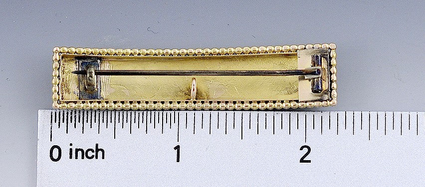 leaves on either side. The rectangular pin has a beaded border around the outer