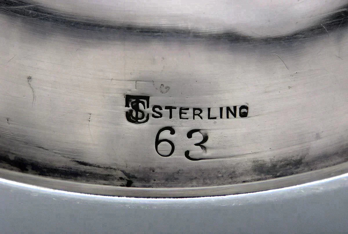 The inside of the ring has a maker's mark, perhaps for A.F. Towle & Son, although we are unsure who the maker is. It is also stamped sterling for the purity.