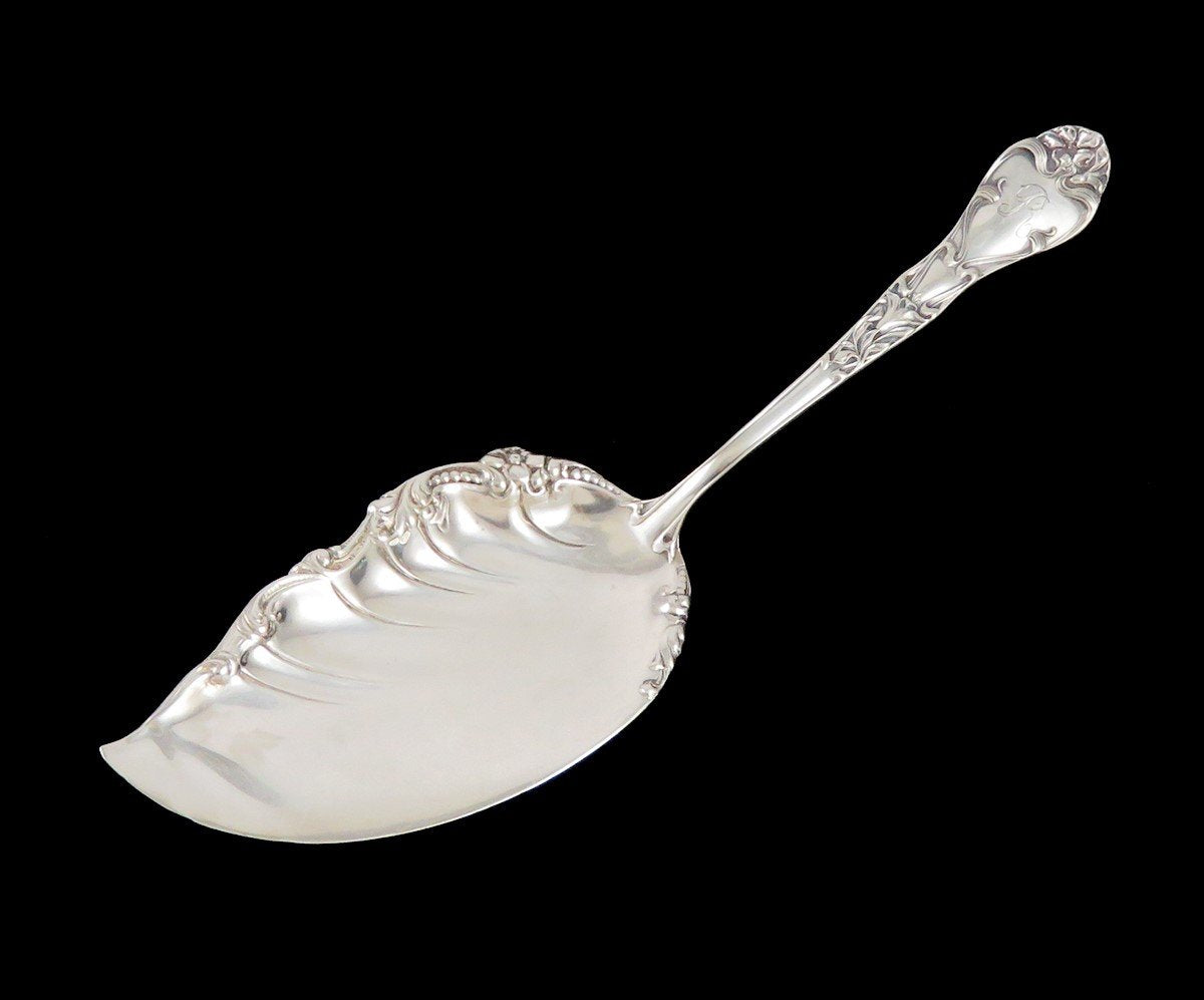 Pretty Art Nouveau Sterling Silver Fish Pastry Server R monogram