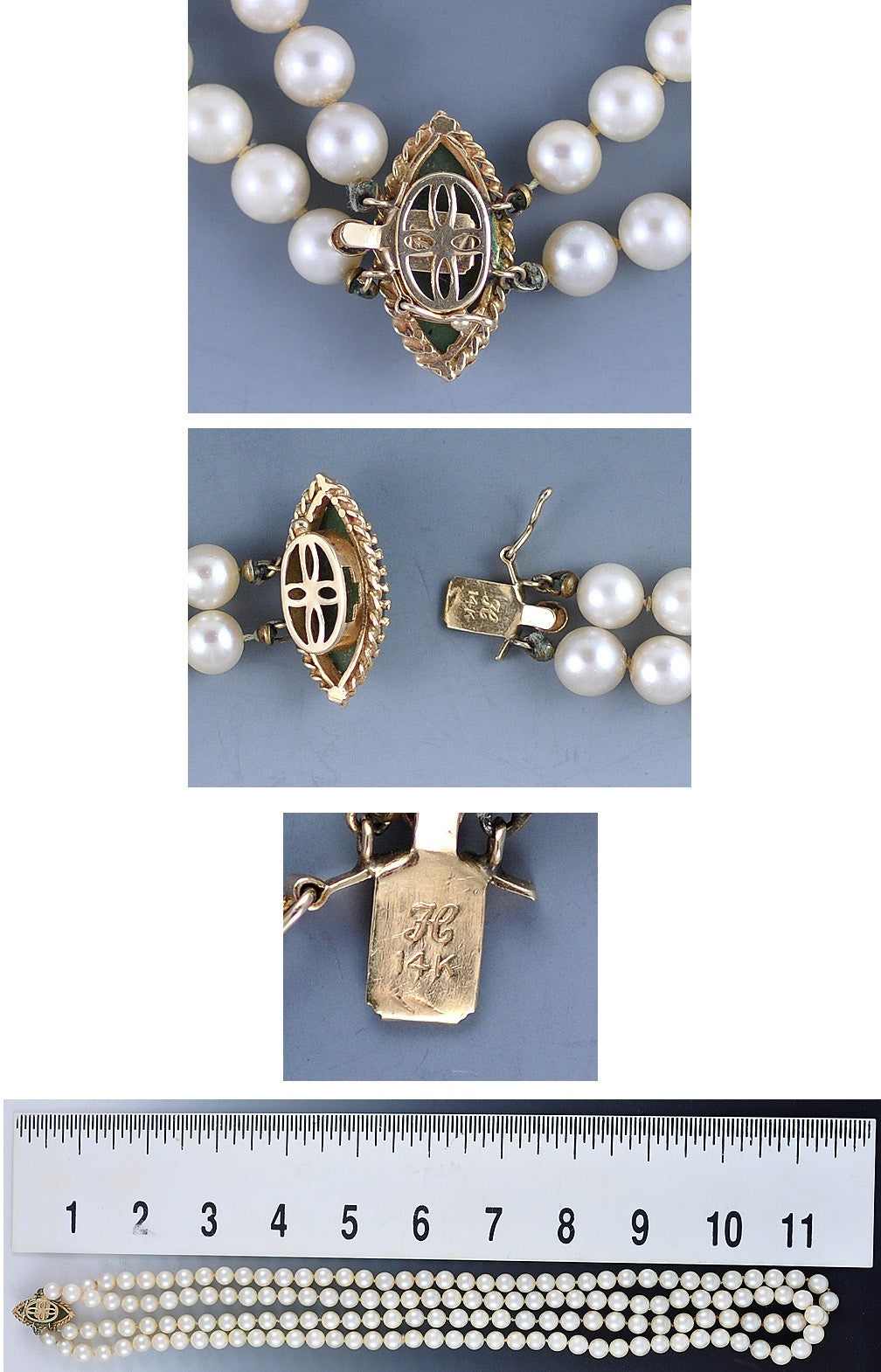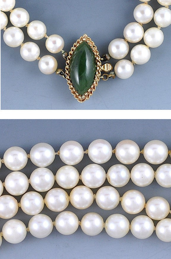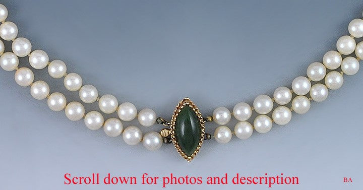 Pretty Double Strand of Pearls with 14K Gold & Jade Clasp