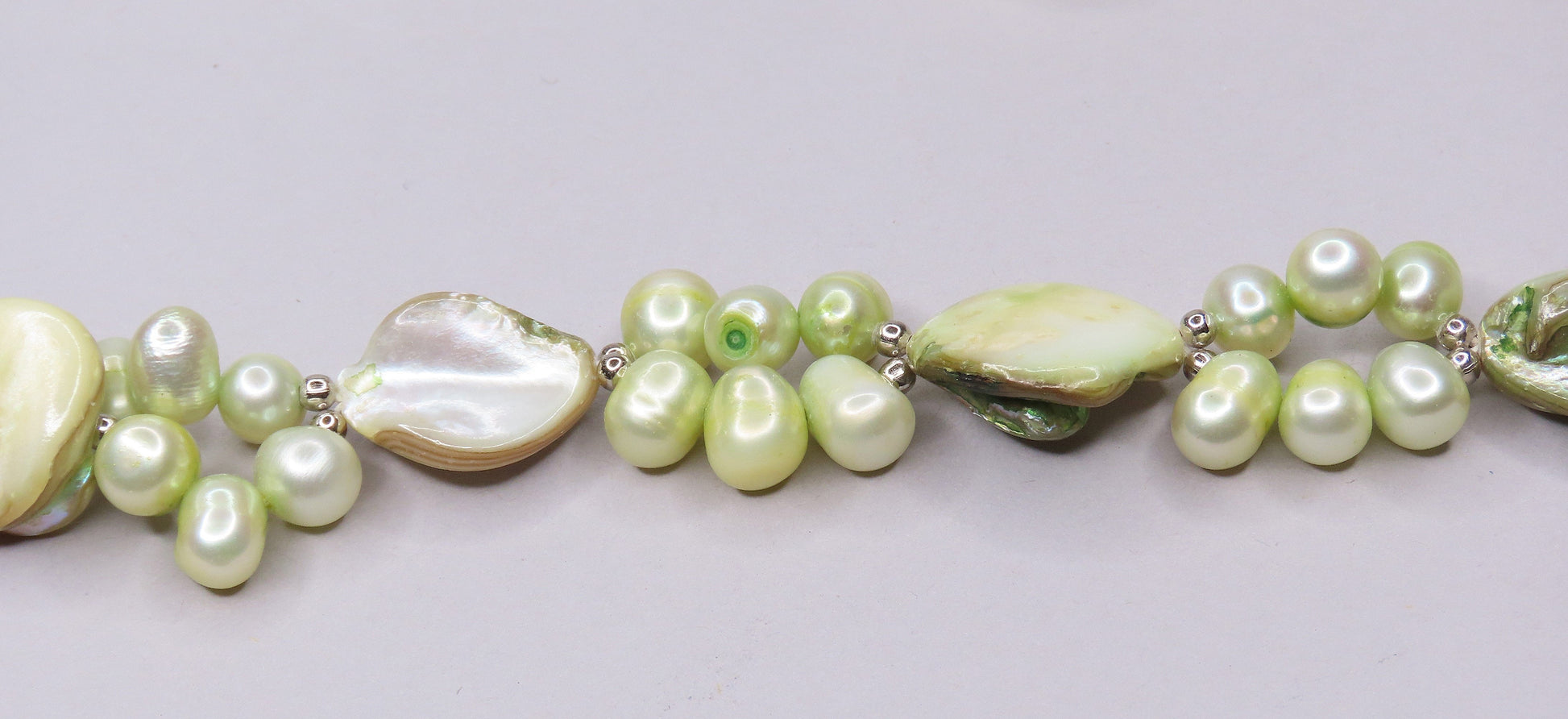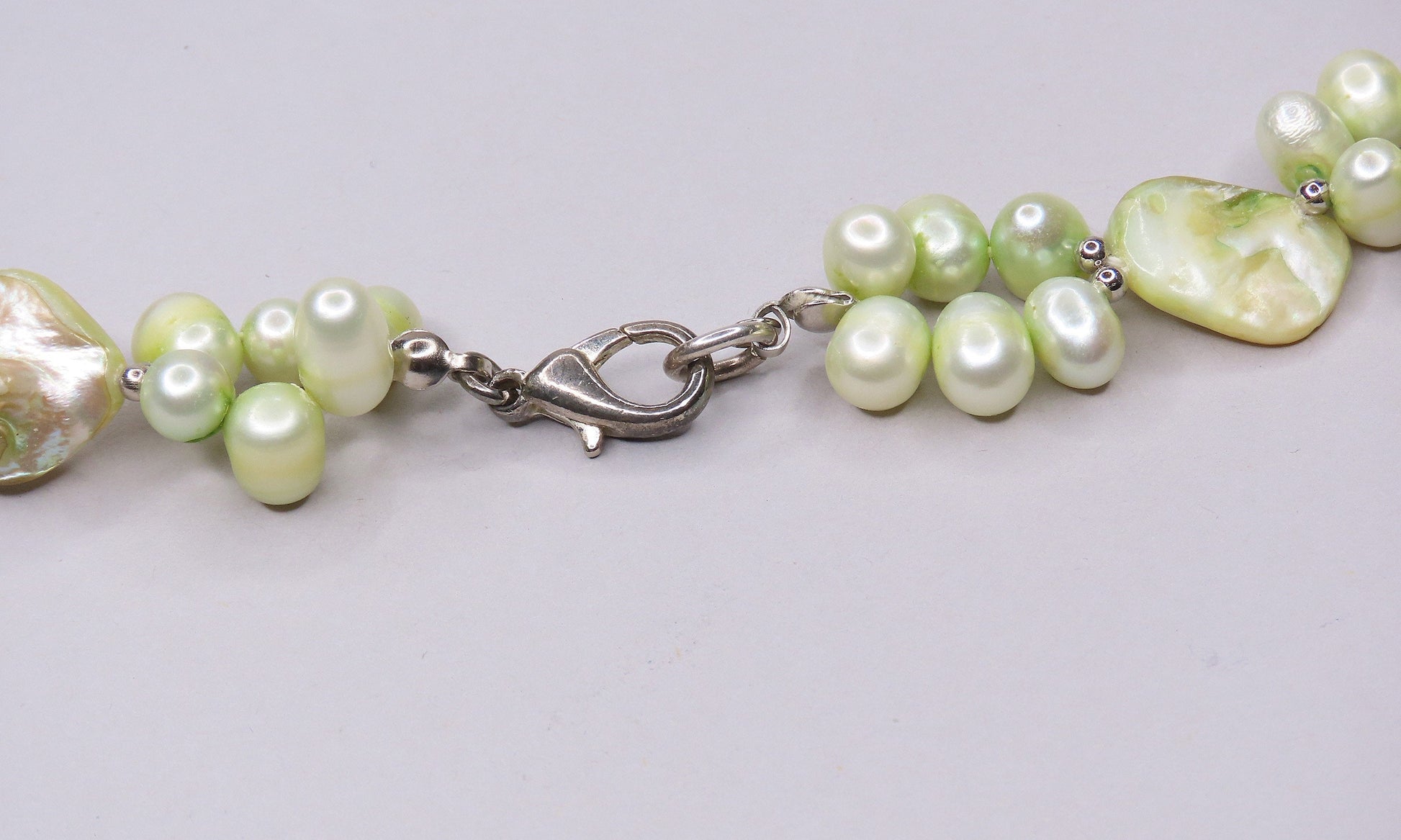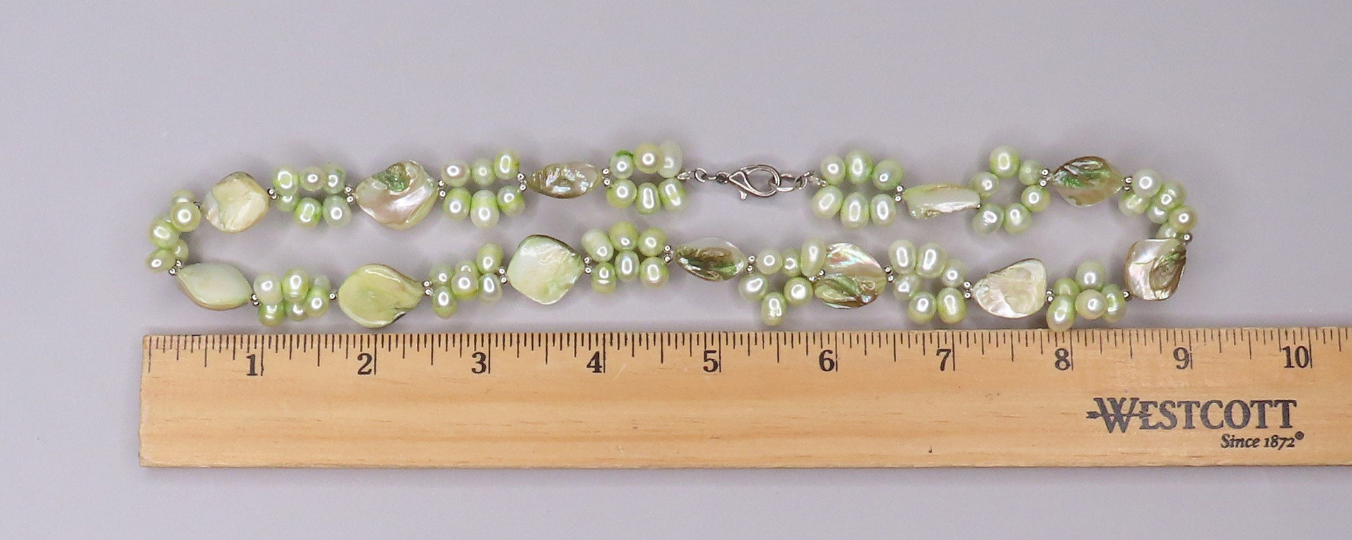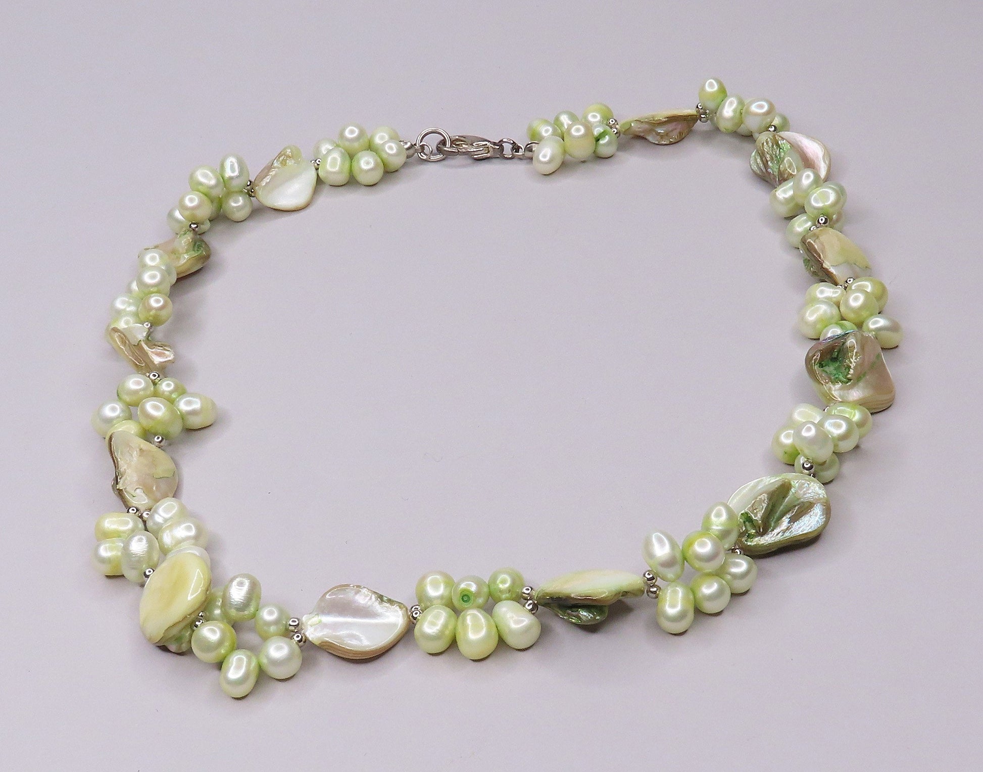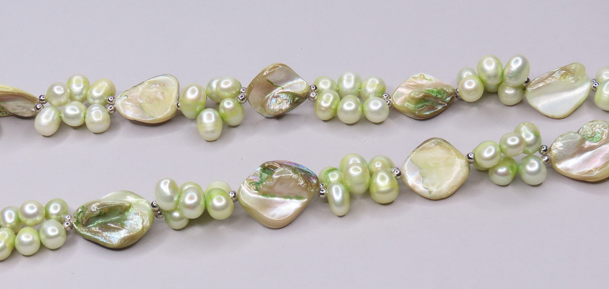 Pretty Spring Green Baroque Pearl and Mother of Pearl Necklace