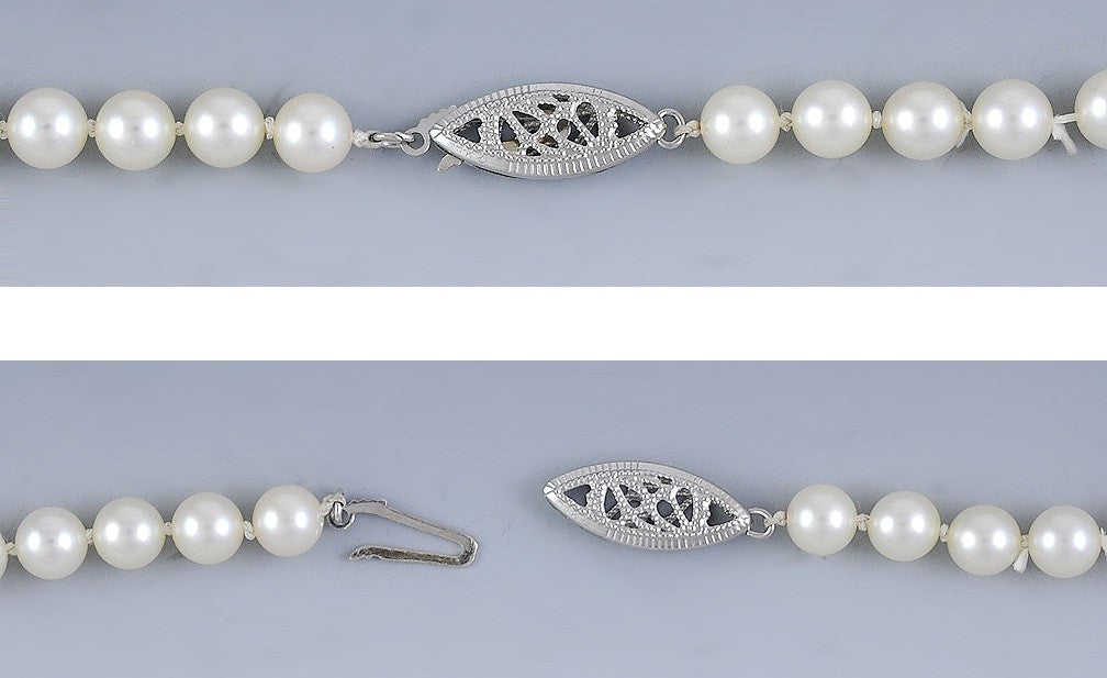 Pretty Strand of Graduated Pearls w 10K White Gold Filigree Clasp Necklace