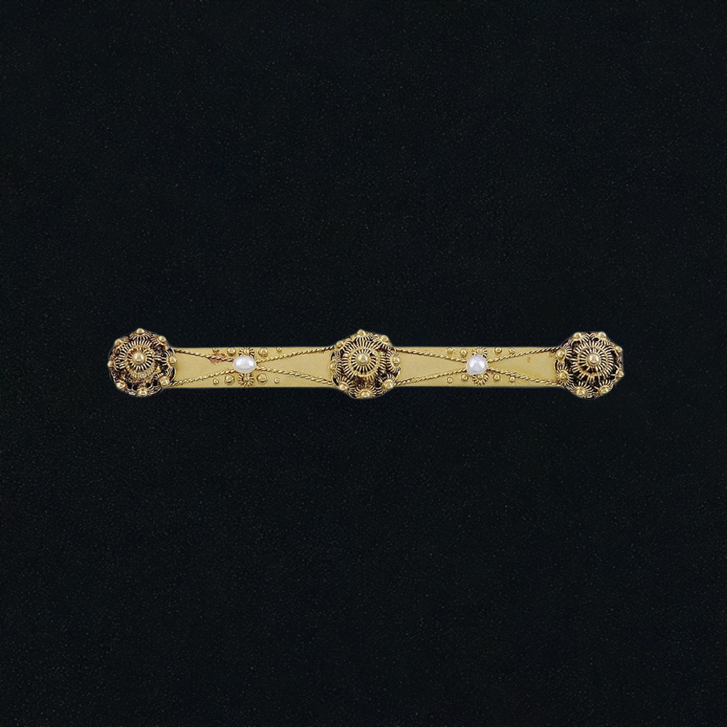 Pretty Victorian Etruscan Revival 18k Gold Pearl Bar Pin