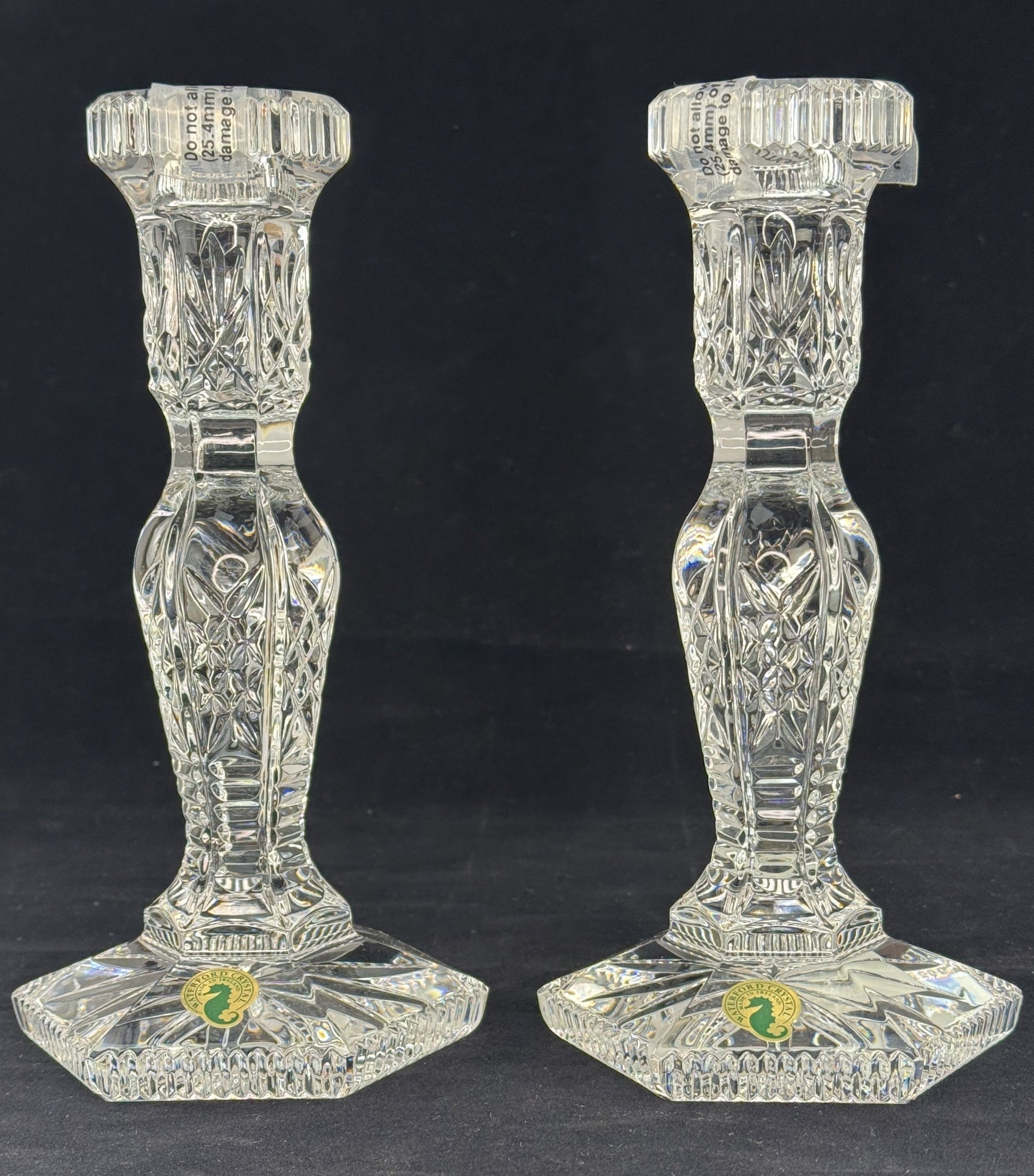 Pristine Pair Waterford Irish Crystal Glass 8.5" Hardwick Candlesticks