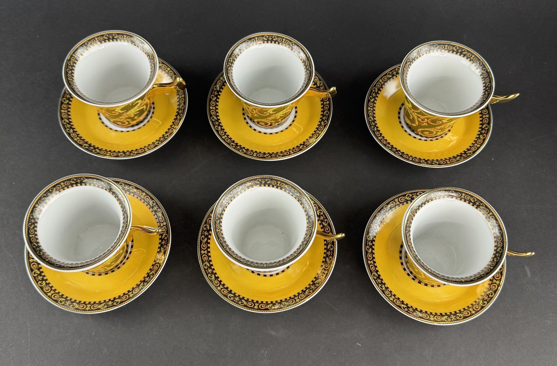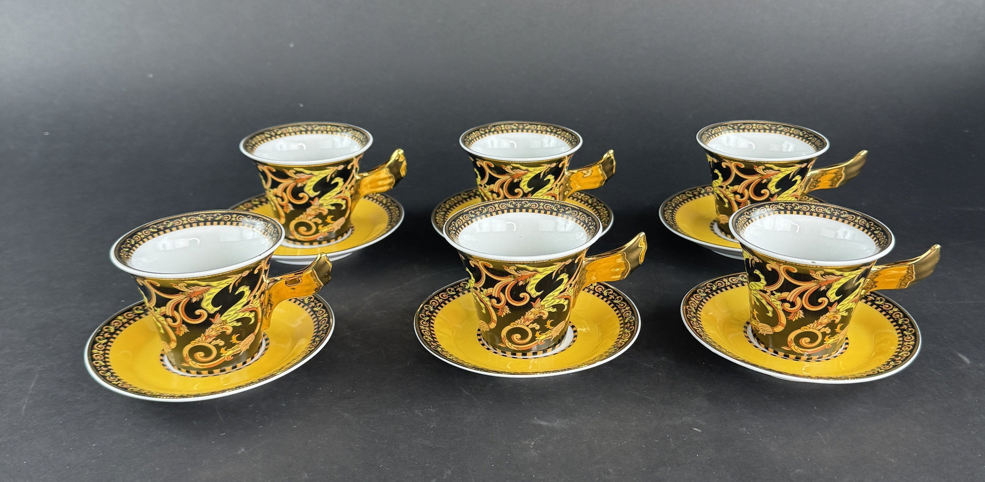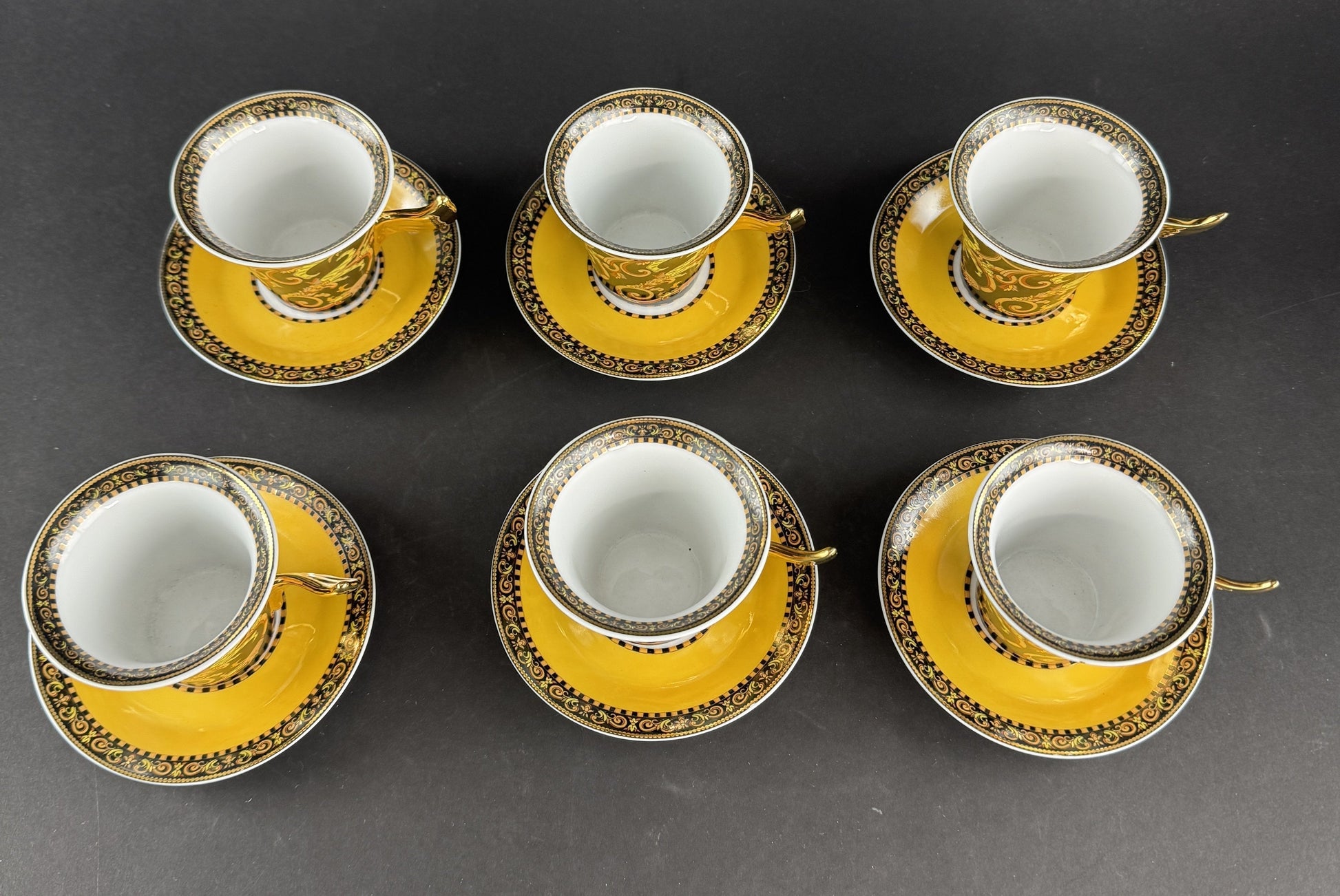 Pristine Set 6 Versace Rutherford Barocco Italy Gold Coffee Cups w Saucers