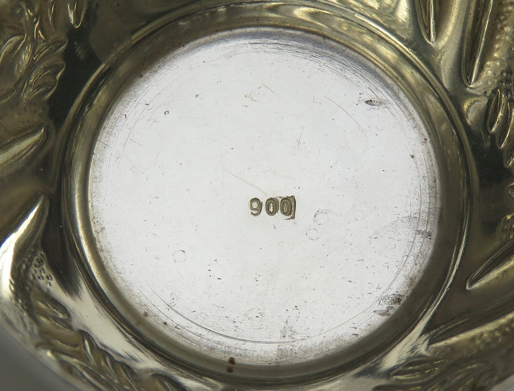 The underside of the box is marked 900 indicating the 90% silver purity, which we guarantee for you by our testing.