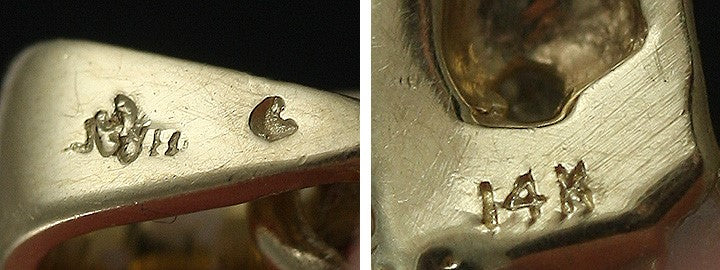 The pendant is stamped 14K on the reverse. We have tested it with nitric