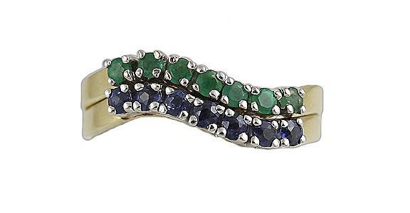 Quality Modern 14k Gold Sapphire & Emerald Swirl Stackable Rings Size 6.5