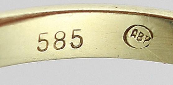 The rings are both marked on the inside of the band with 585 for 14K gold and