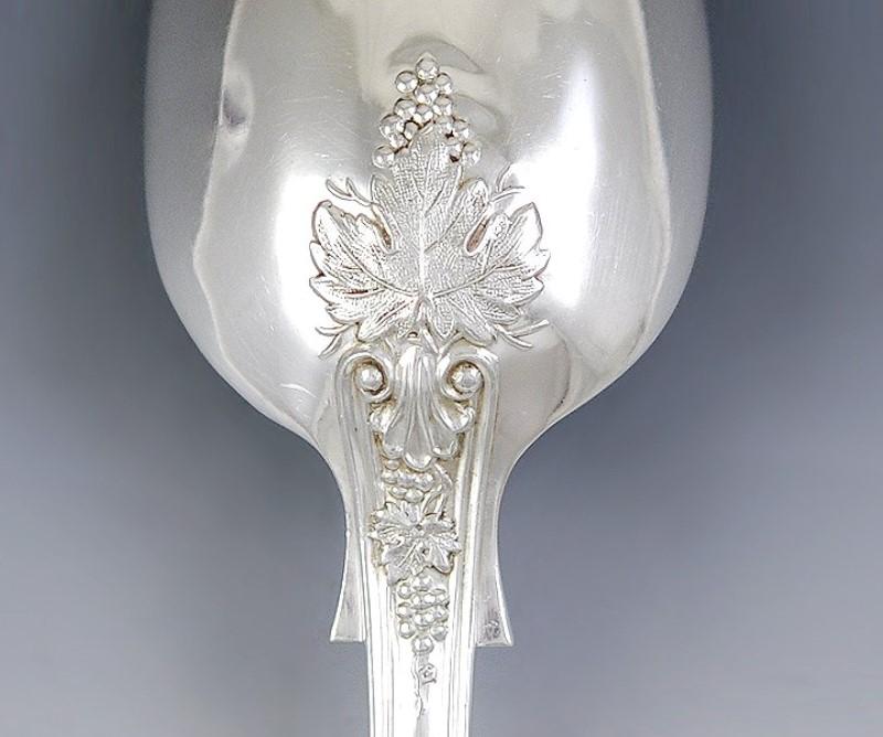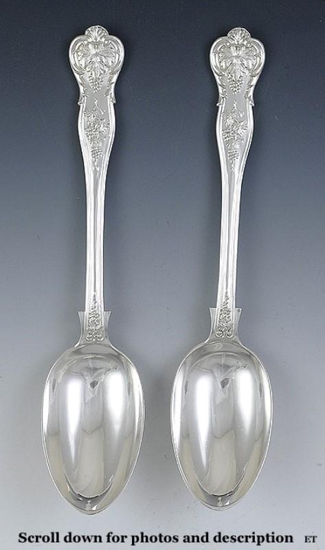 Quality Pair Victorian English Sterling Silver Serving Spoons Grapevine 1892