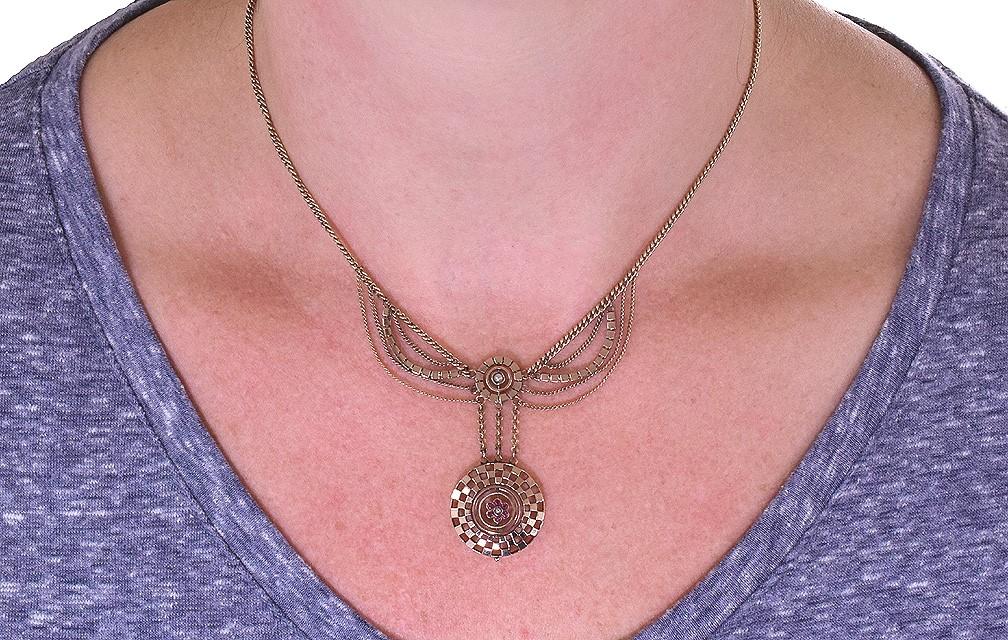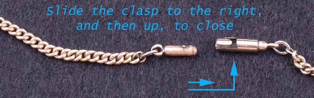 The clasp is a barrel-type clasp, and is working well. It is spring-loaded, and is a type of clasp that we rarely see! We believe the clasp very well could have been replaced at one time. There are no problems with this necklace. It is in great condition, ready to make you feel like royalty!