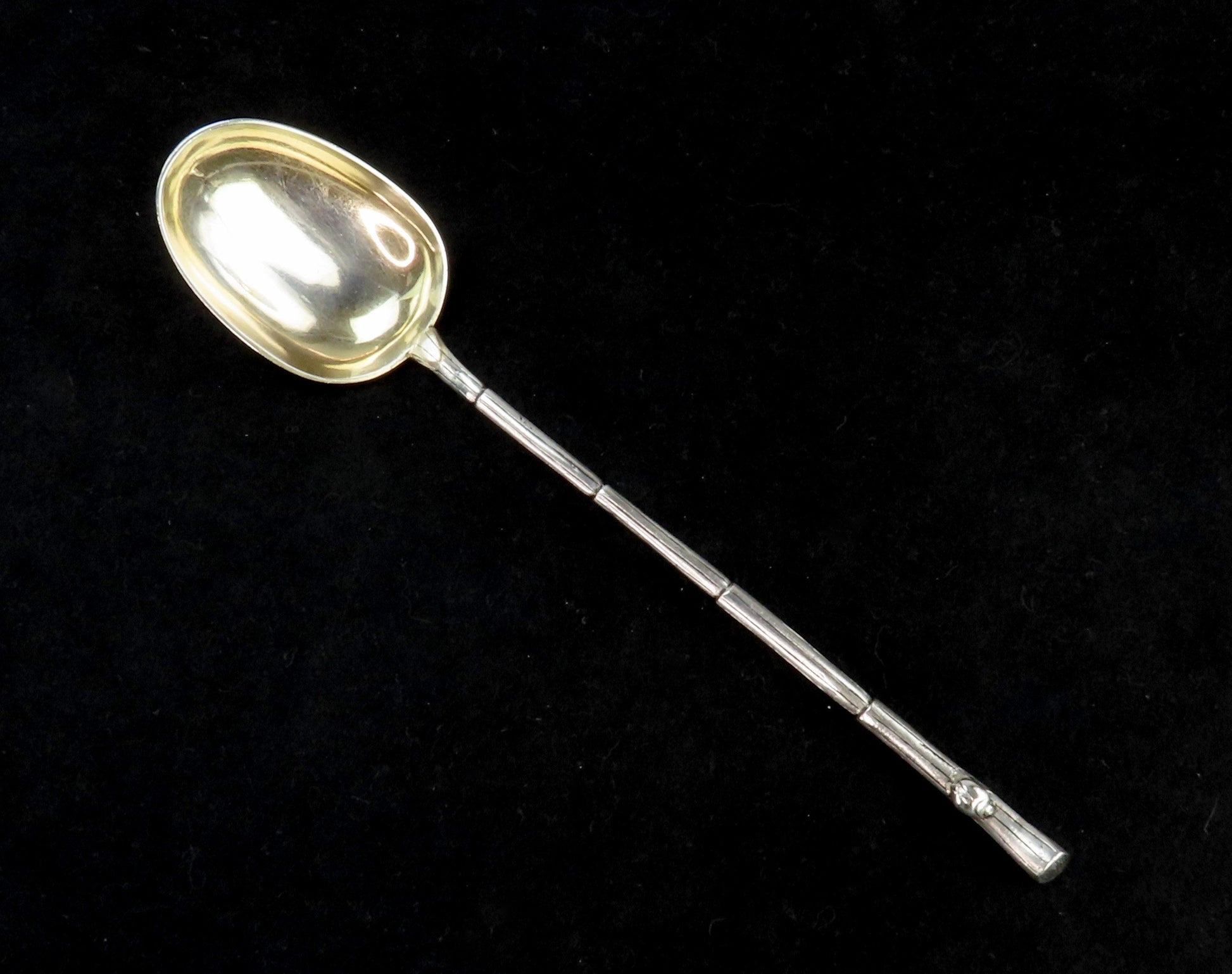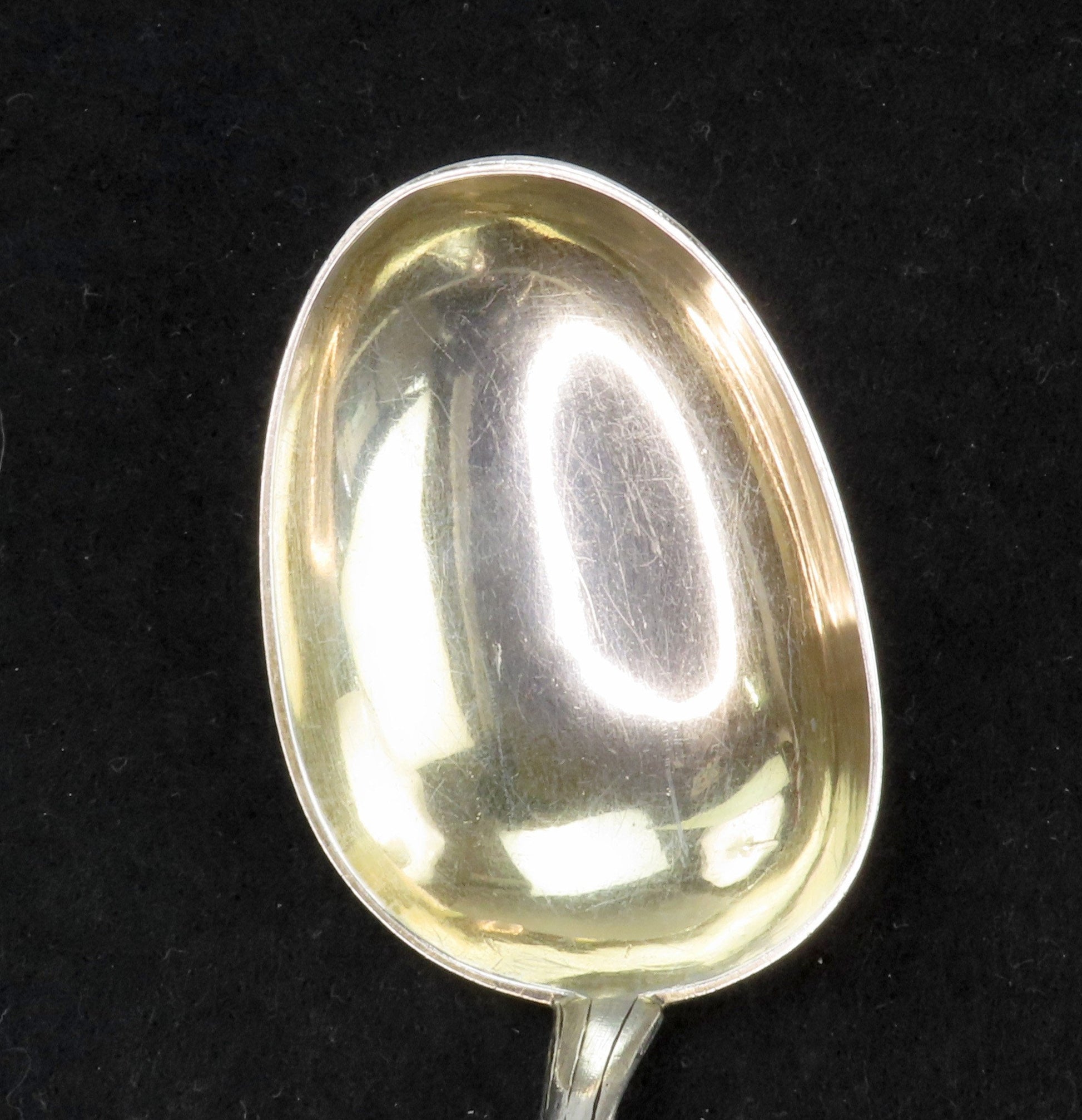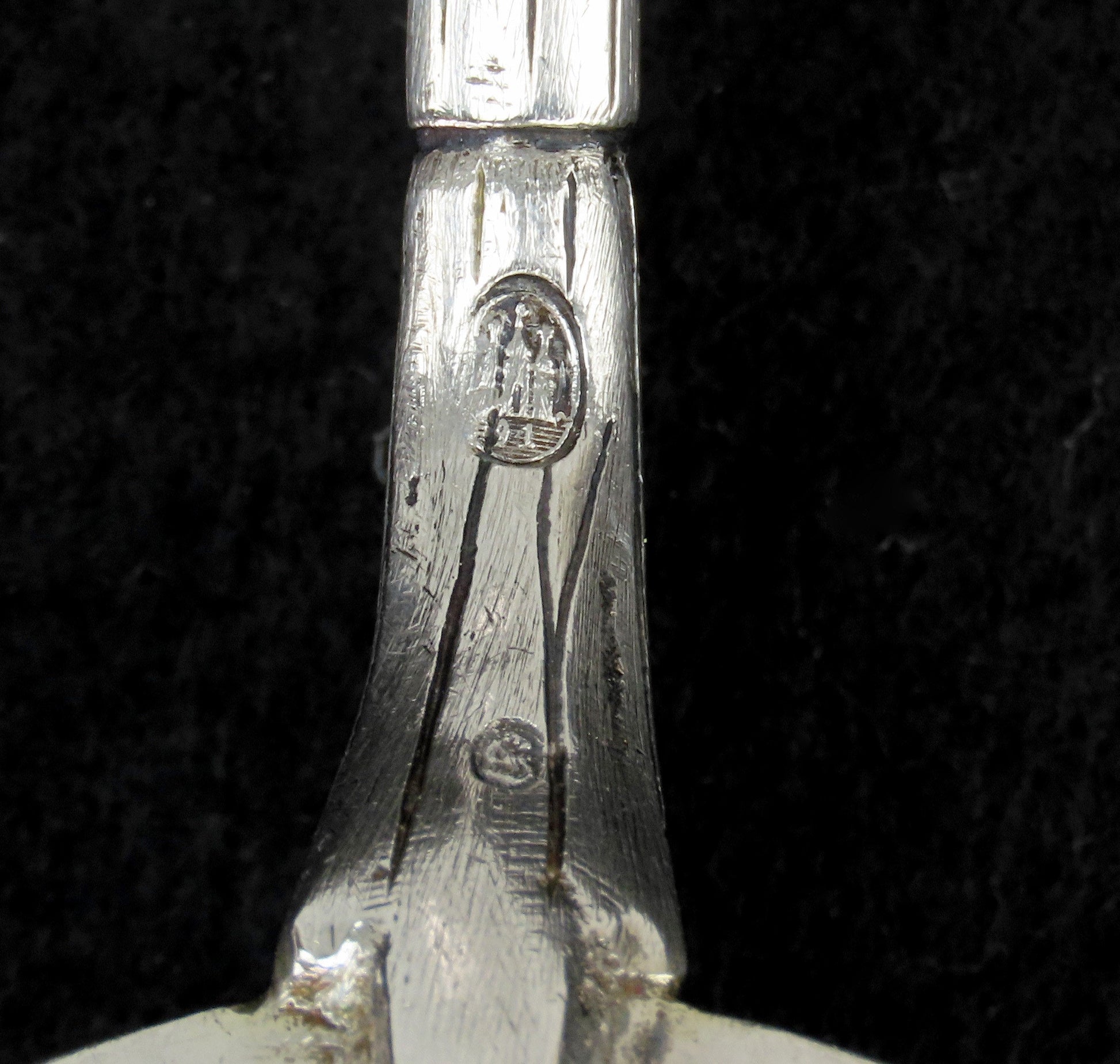 The spoon is stamped with the Danish three towers mark dated 1891, guaranteeing a minimum of 826 purity silver and an assay mark.