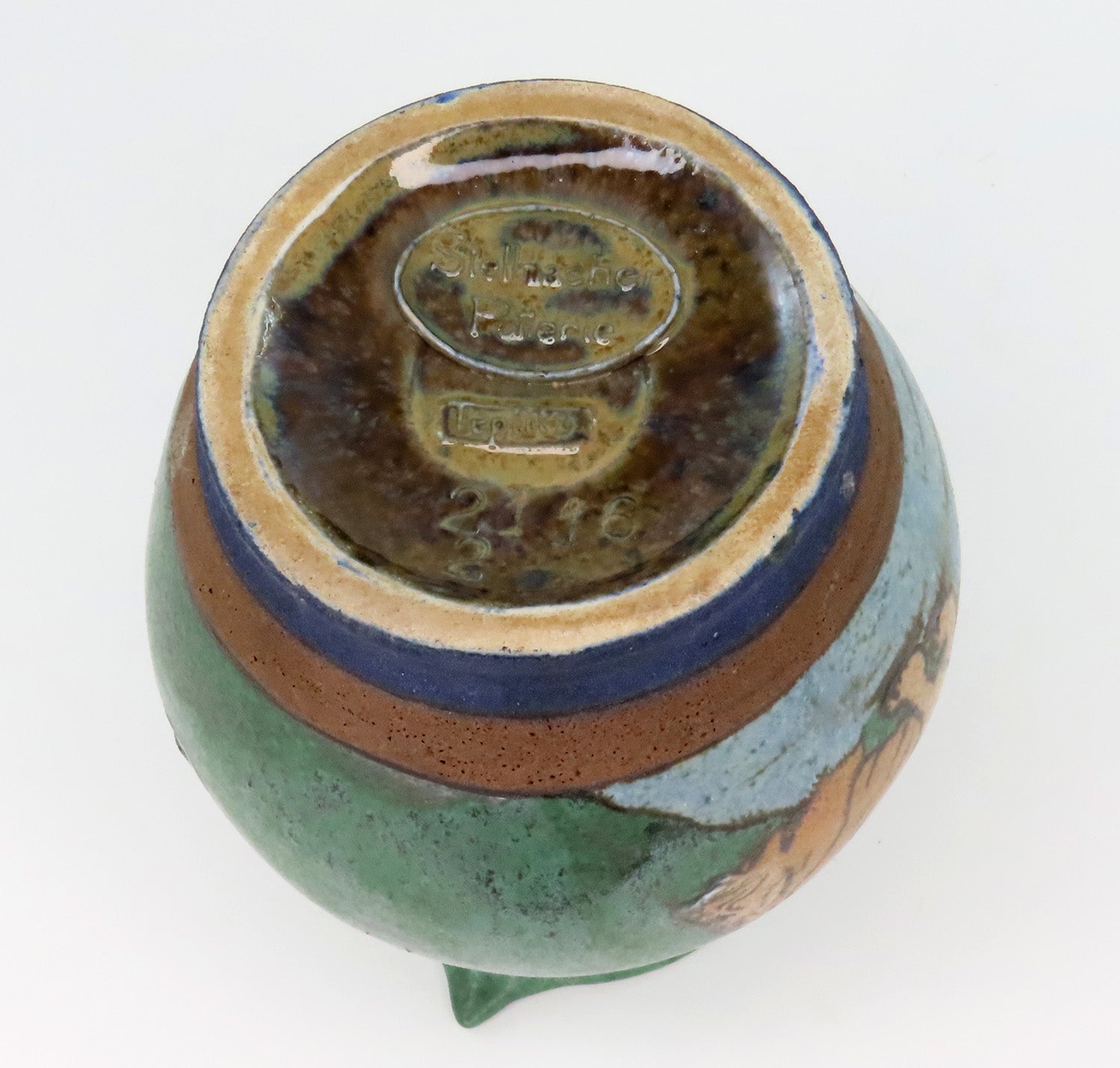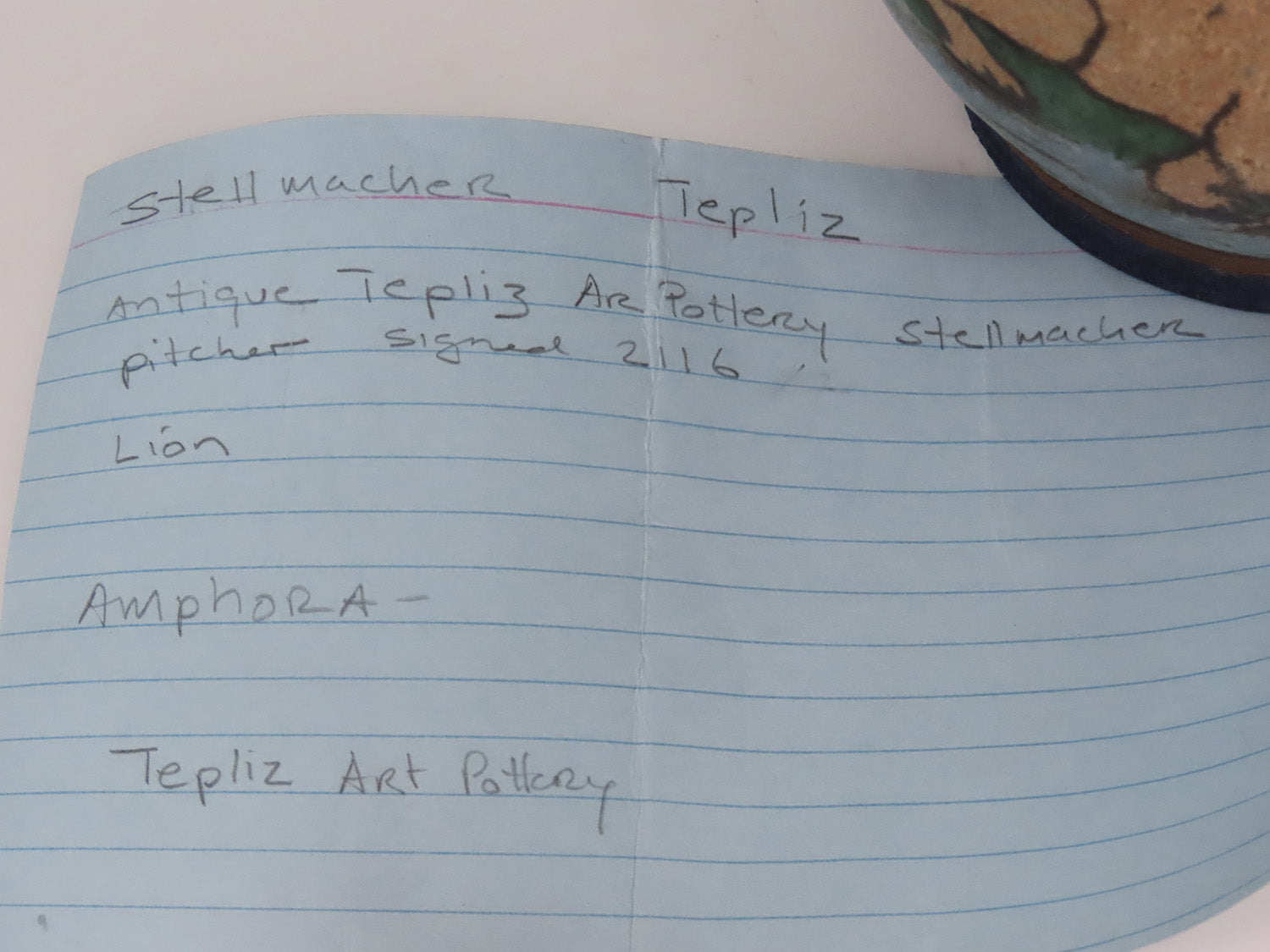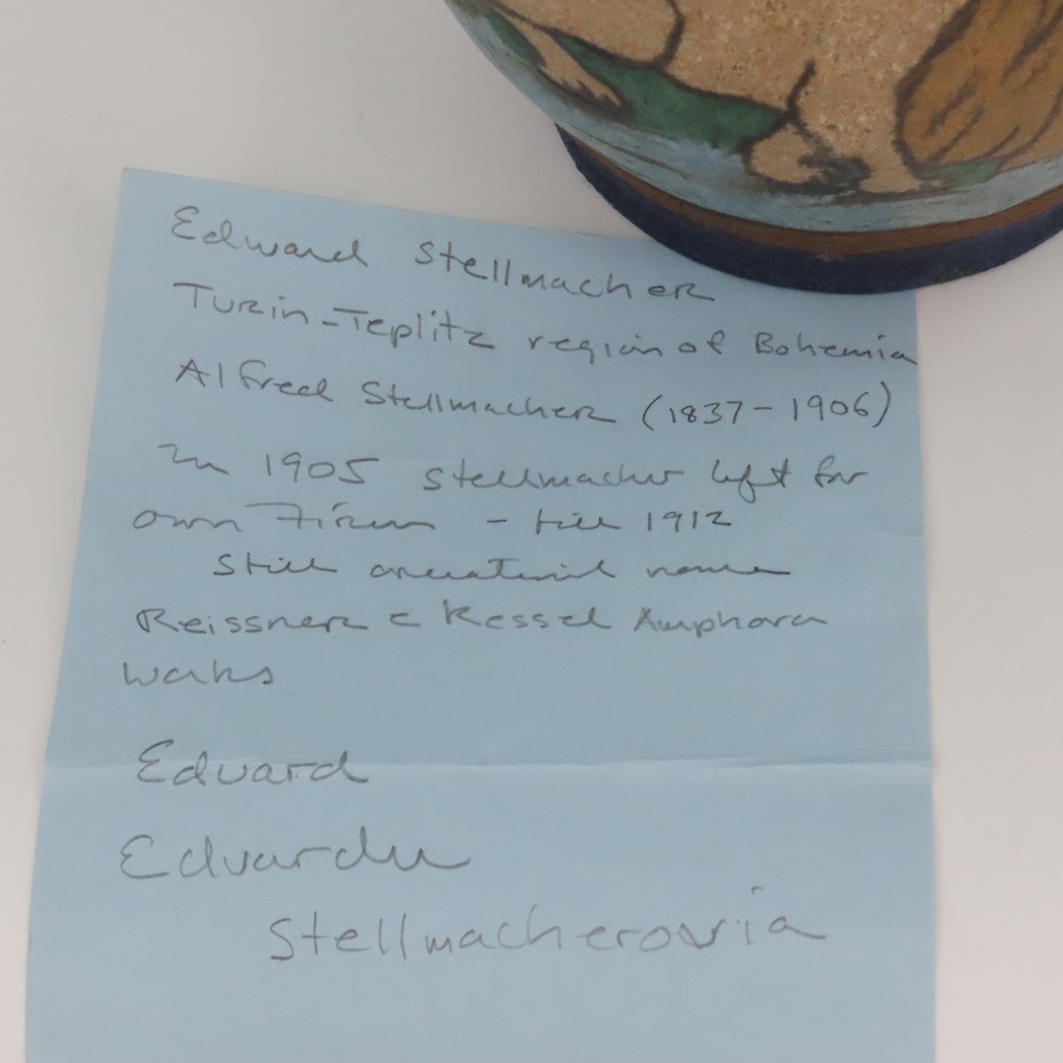 This piece is in excellent condition. There are no chips, no cracks, no breaks, and no repairs. The underside is signed Stellmacher Potterie, Teplitz, and 2116 / 2.