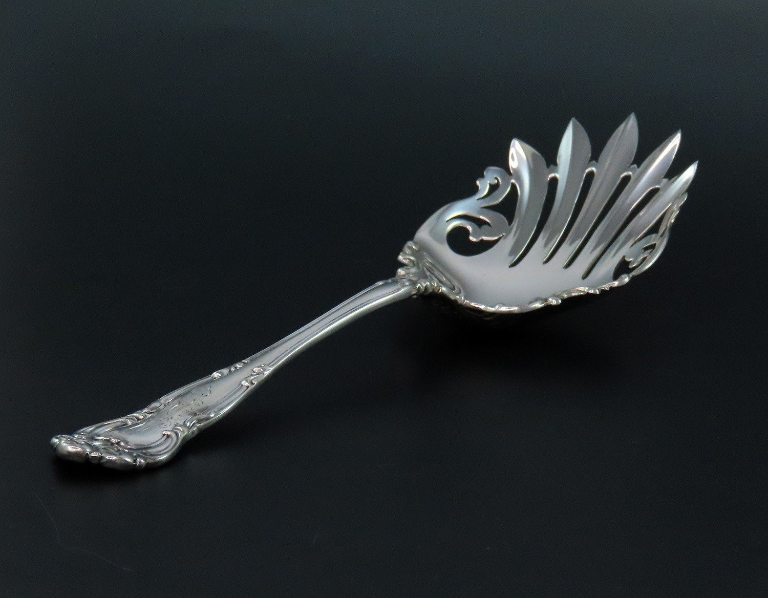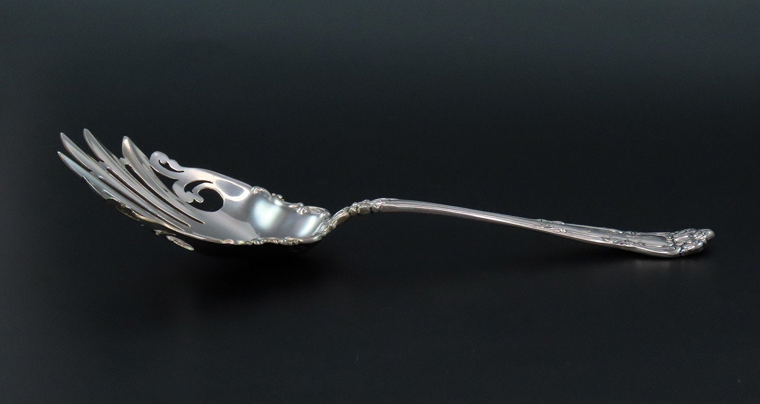 This server is in excellent condition. The details of the pattern and the engraving of the body are nice and crisp. No splits, no dents, no monogram removals, and no repairs.