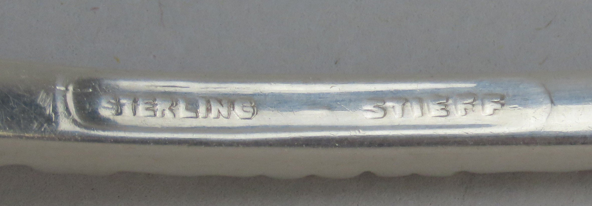 The reverse is marked sterling along with the maker's mark for Stieff.