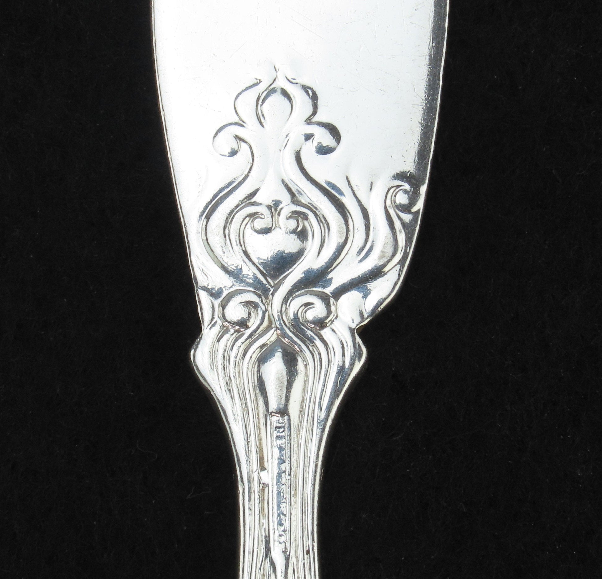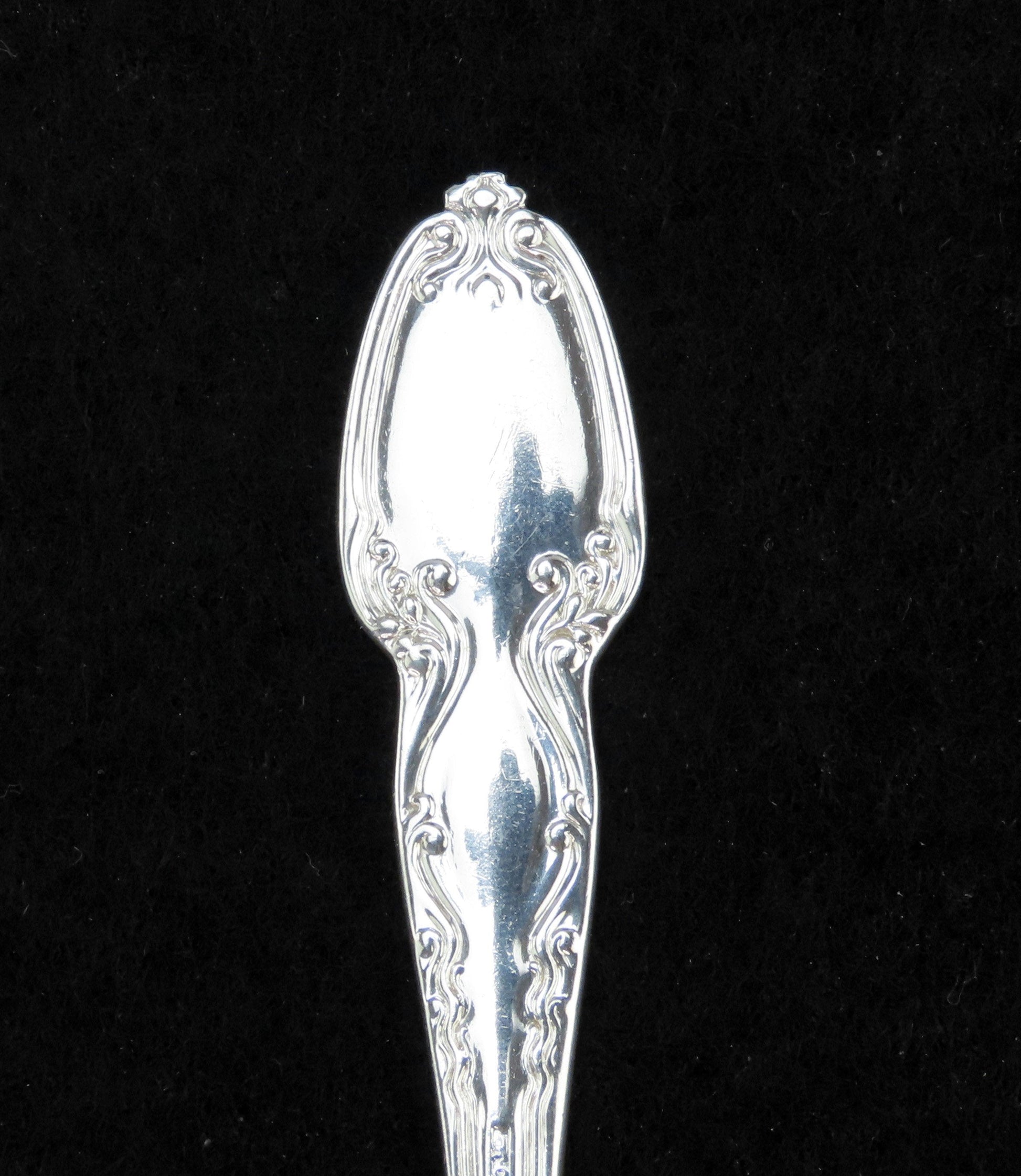 The stem is stamped with the Tiffany & Co maker's mark as well as the patent date of the patent date of 1890. These stamps are somewhat worn with polishing, but are more legible in person than the photos show.