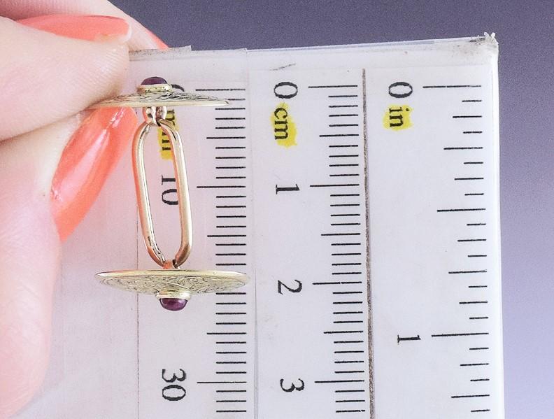 In the center of each oval is a round ruby cabochon, very attractive with the