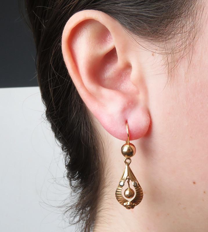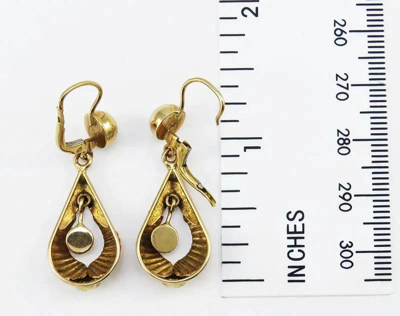 Each earring is marked 750 for 18 karat purity. All parts are guaranteed to be 18k purity.