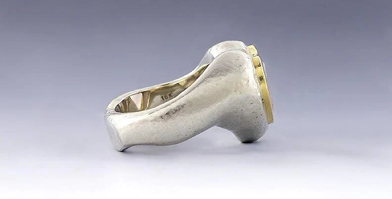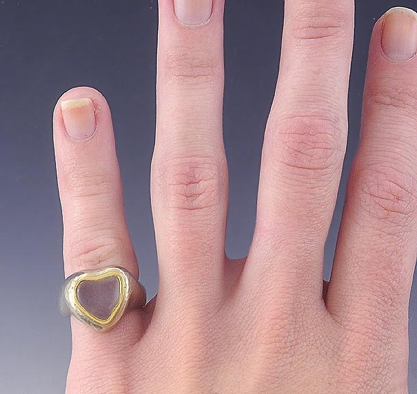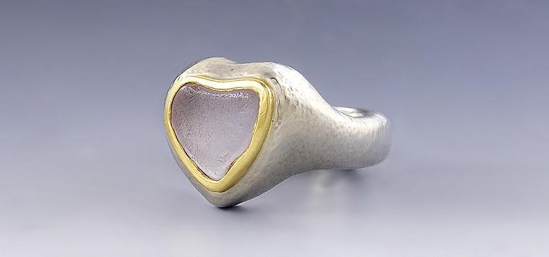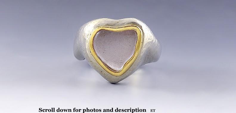 Artisan 18k White & Yellow Gold Beach Glass Heart Ring Size 5.25