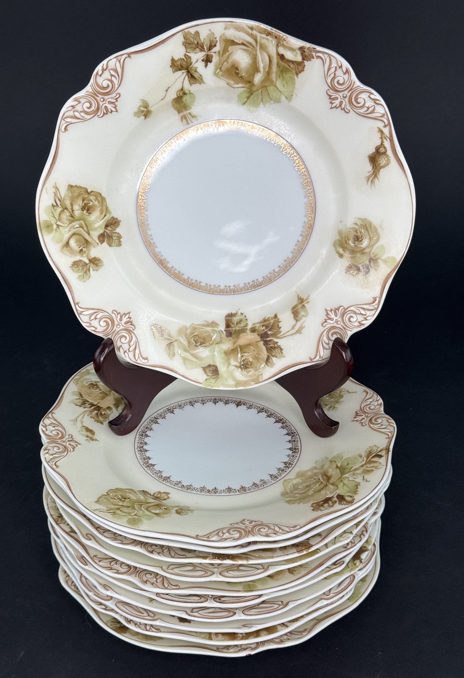 Set 11 Antique Hermann Ohme Silesia Poland Old Ivory 7.75" Salad Dessert Plates