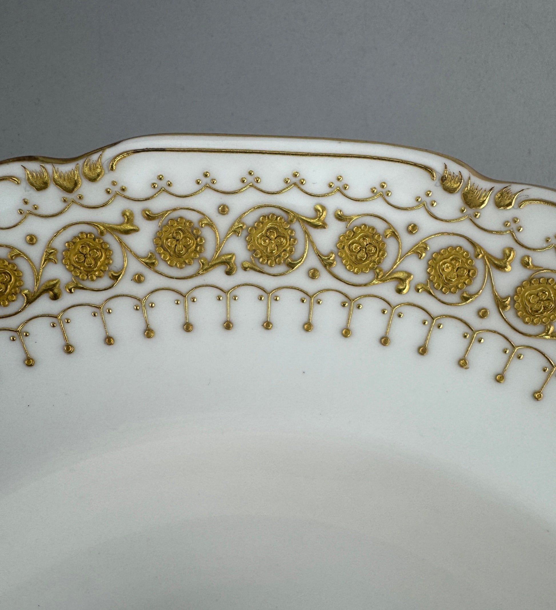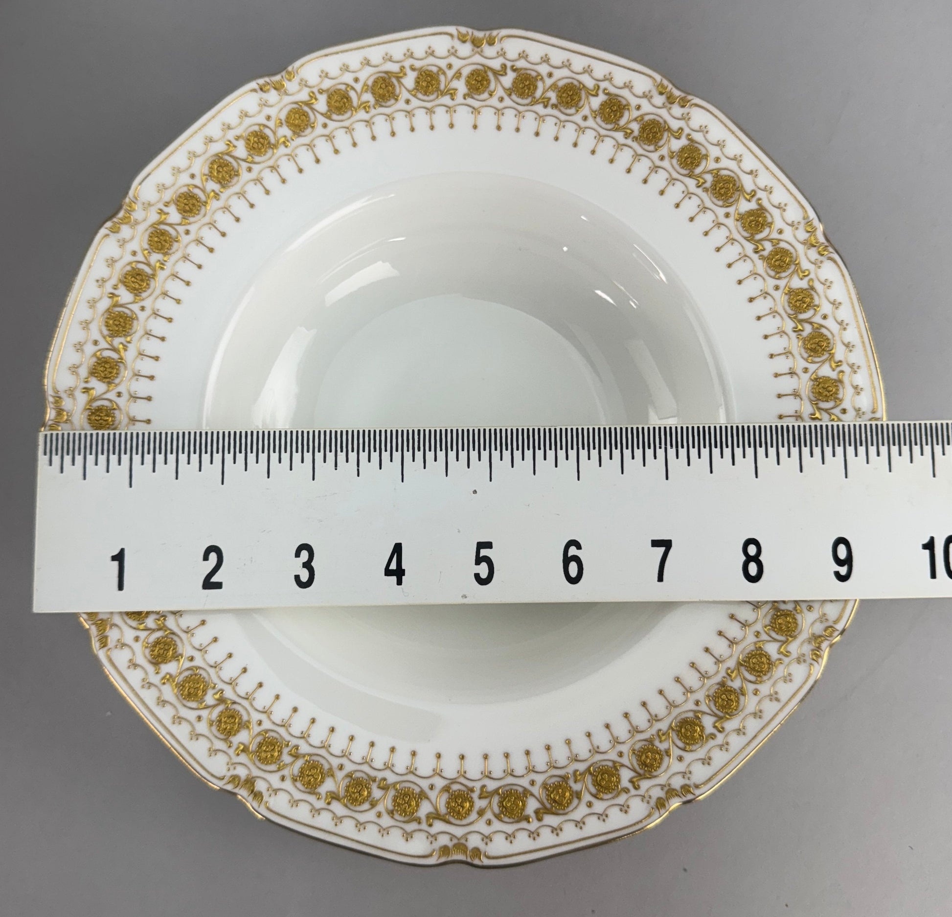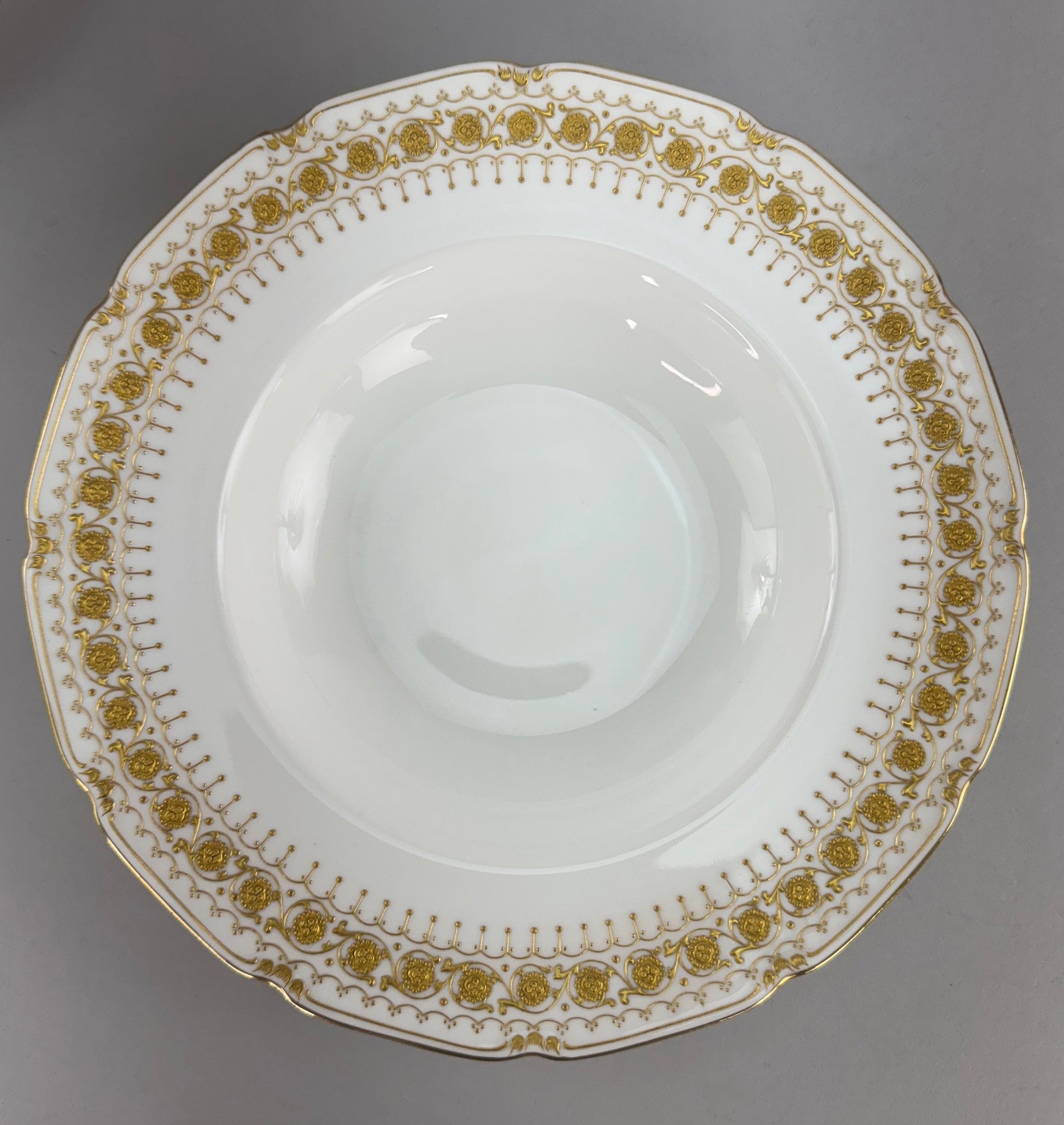 Set 12 c1920s Royal Doulton Noke's Tiffany Co Raised Gilt Rim 9.5" Soup Bowls