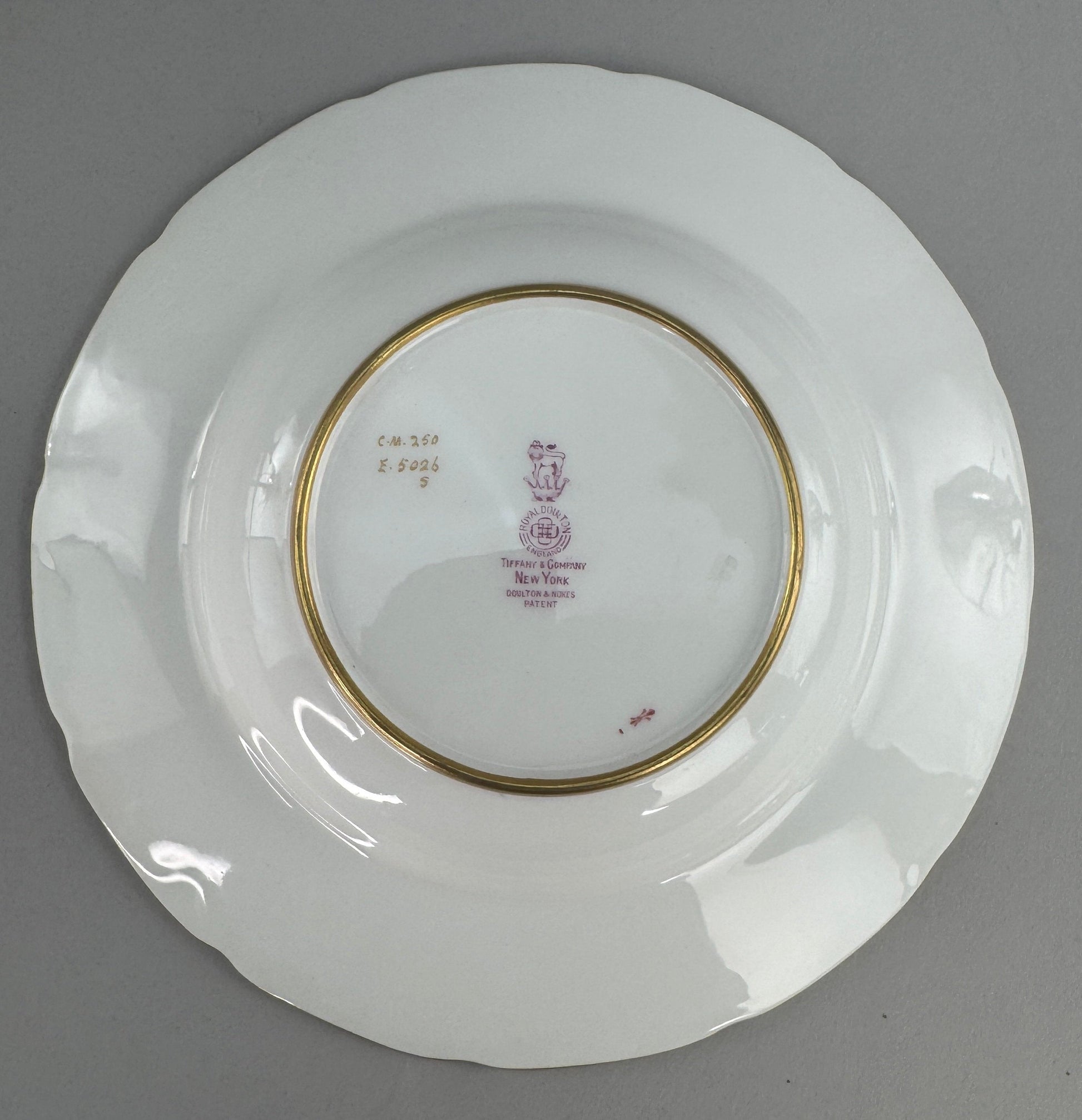 Each bowl is signed on the underside with the Royal Doulton mark, as well as the retail mark for Tiffany & Company New York and a Doulton & Noke's Patent mark, which we assume refers specifically to the raised gilding decoration technique.