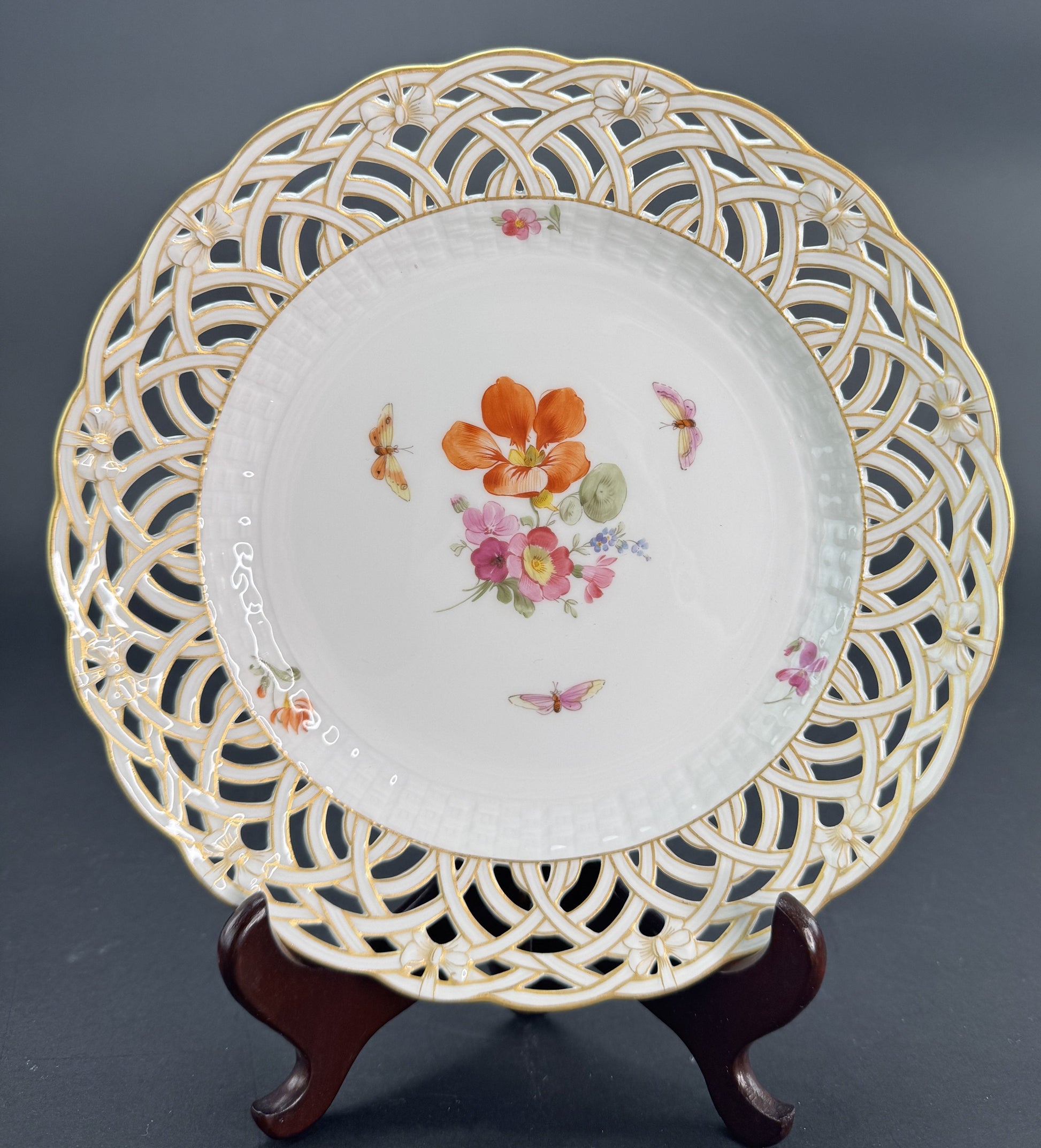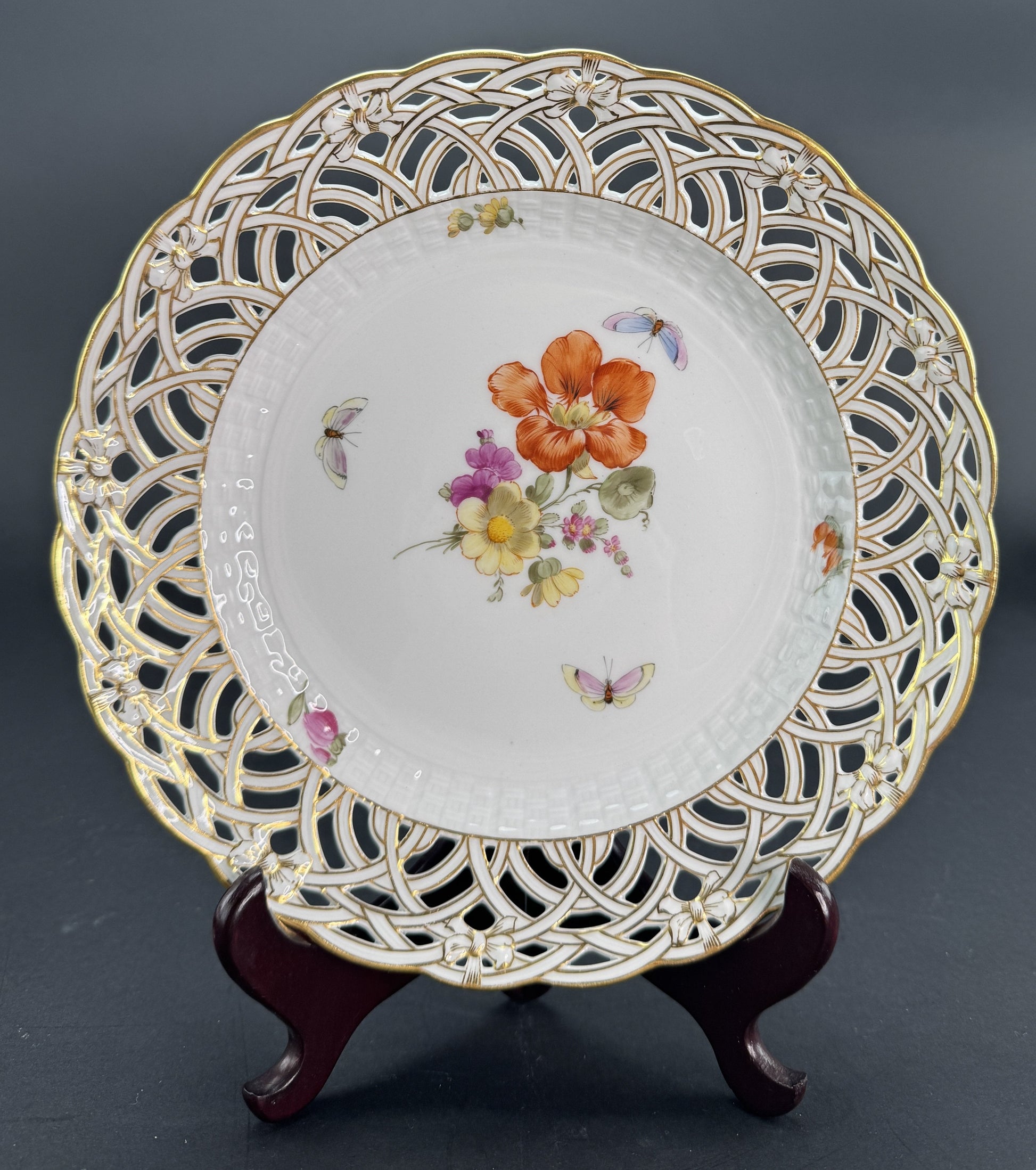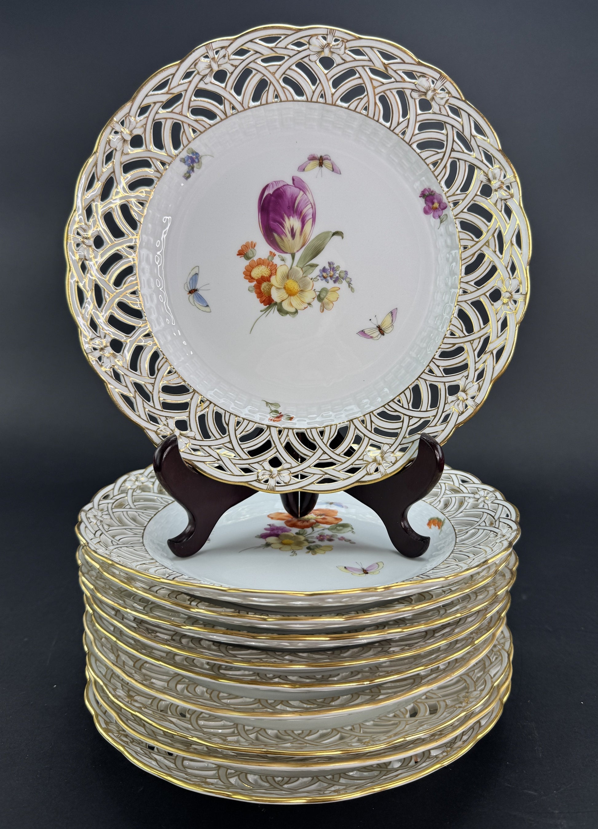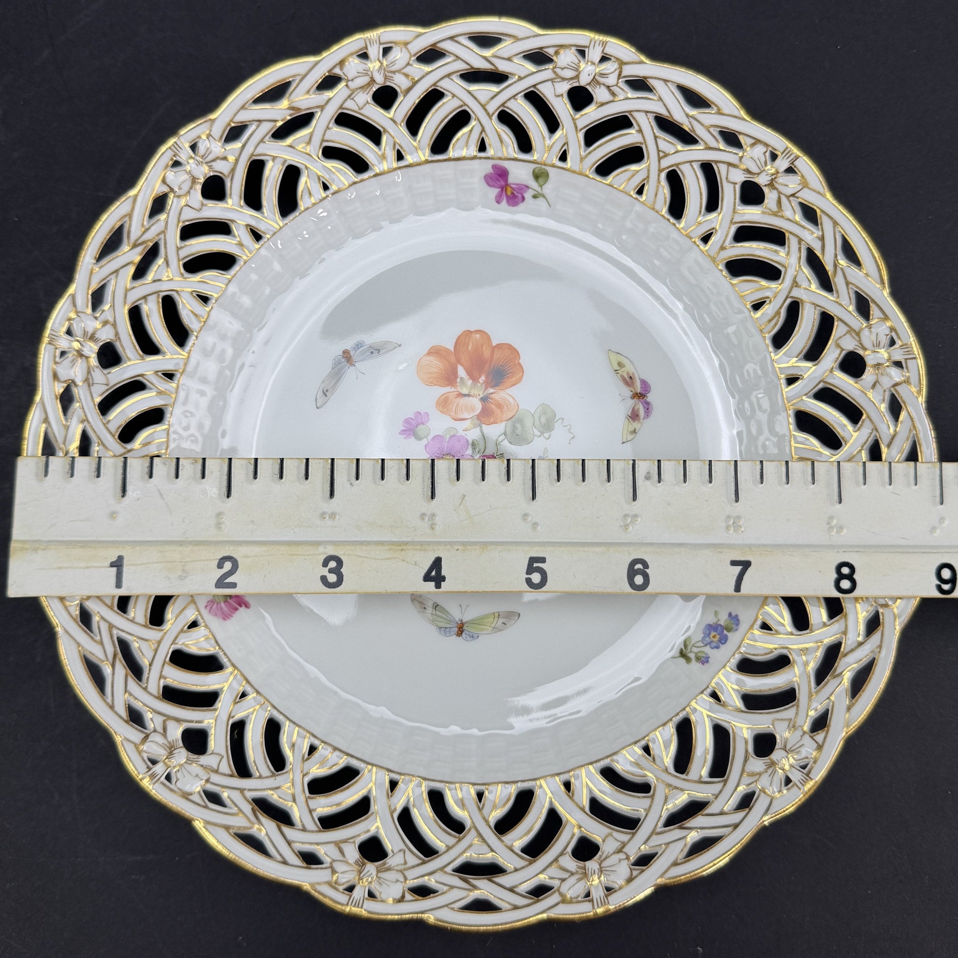 Set 9 c1890s KPM Reticulated Pierced 9" Hand Painted Plates Flowers Butterflies