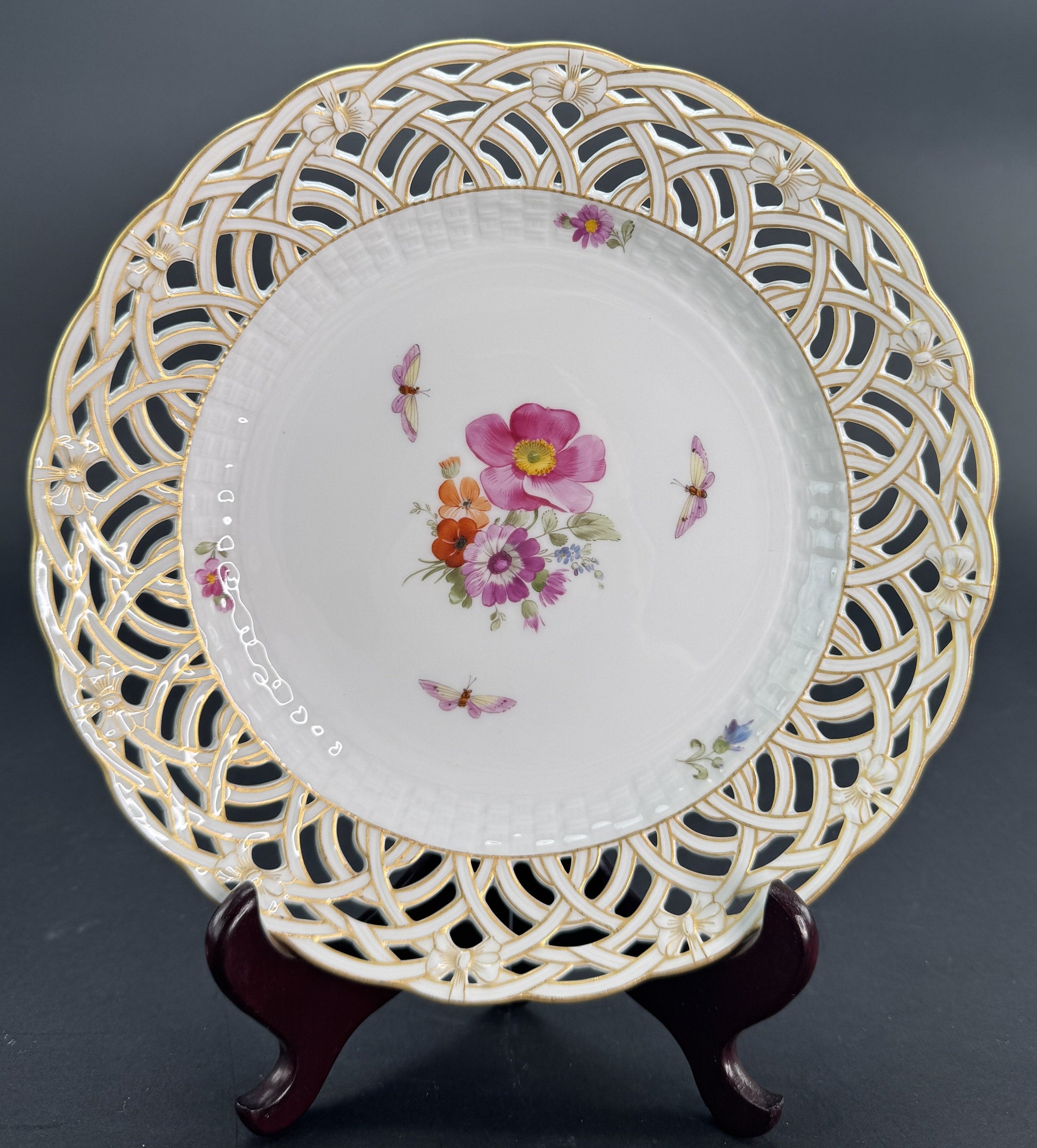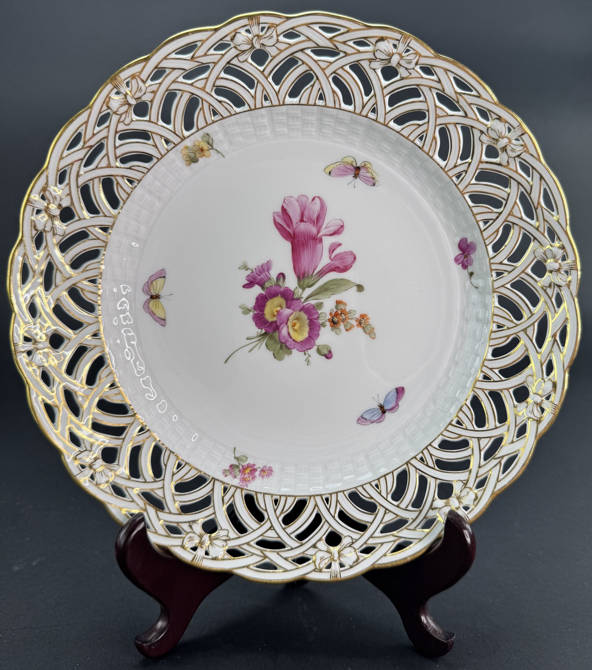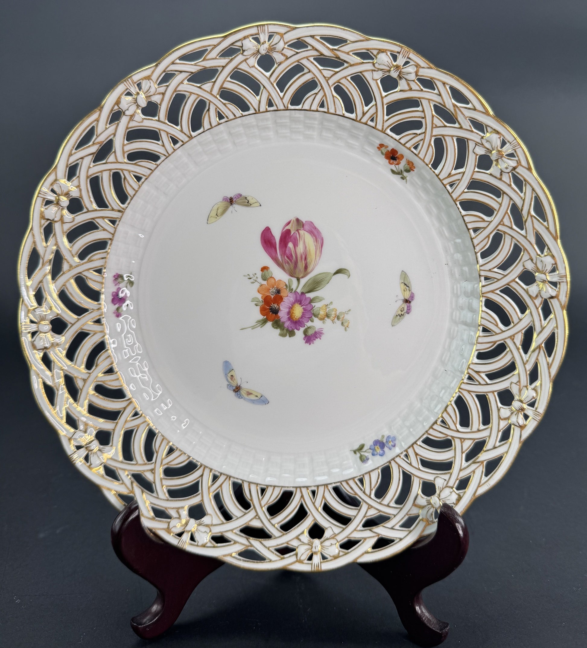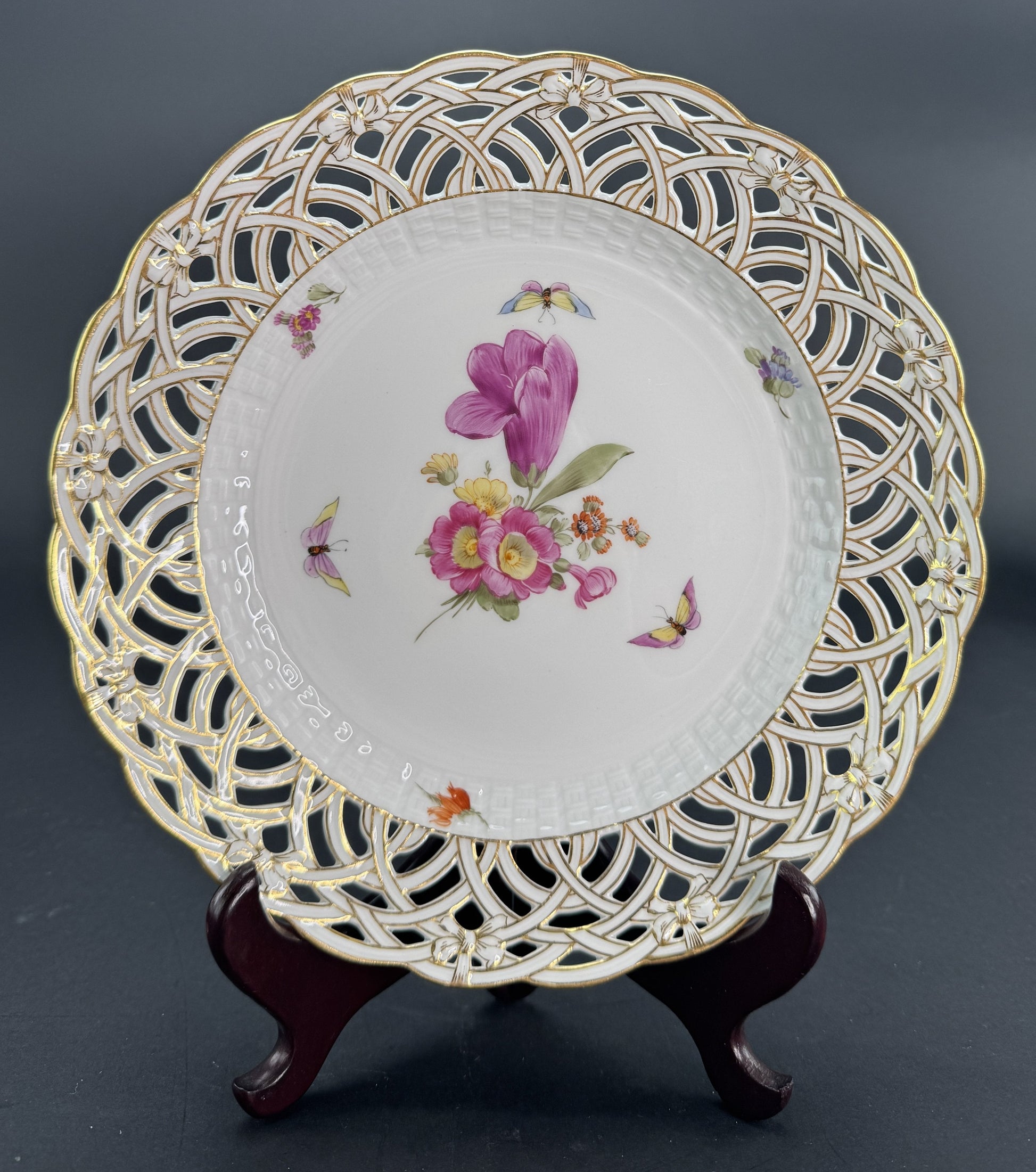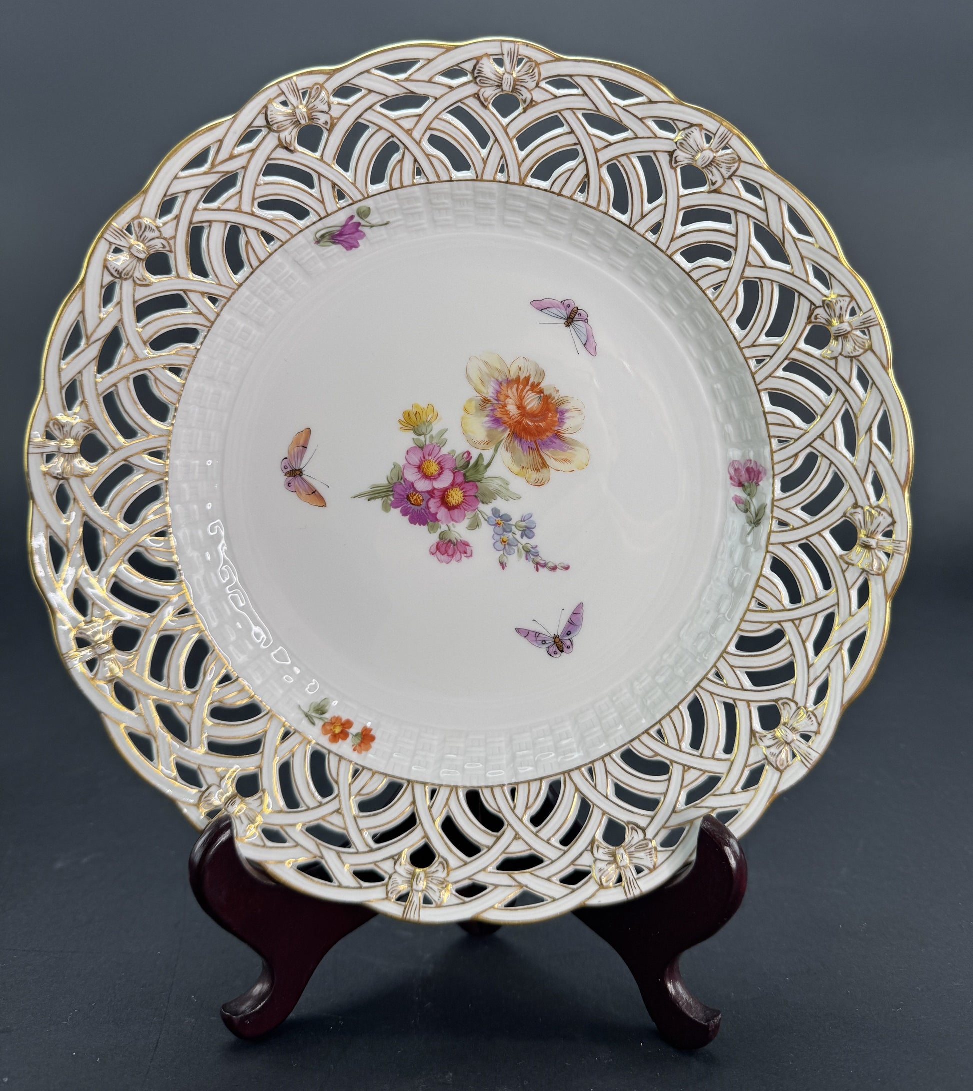 Set 9 c1890s KPM Reticulated Pierced 9" Hand Painted Plates Flowers Butterflies