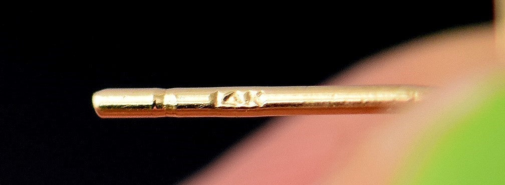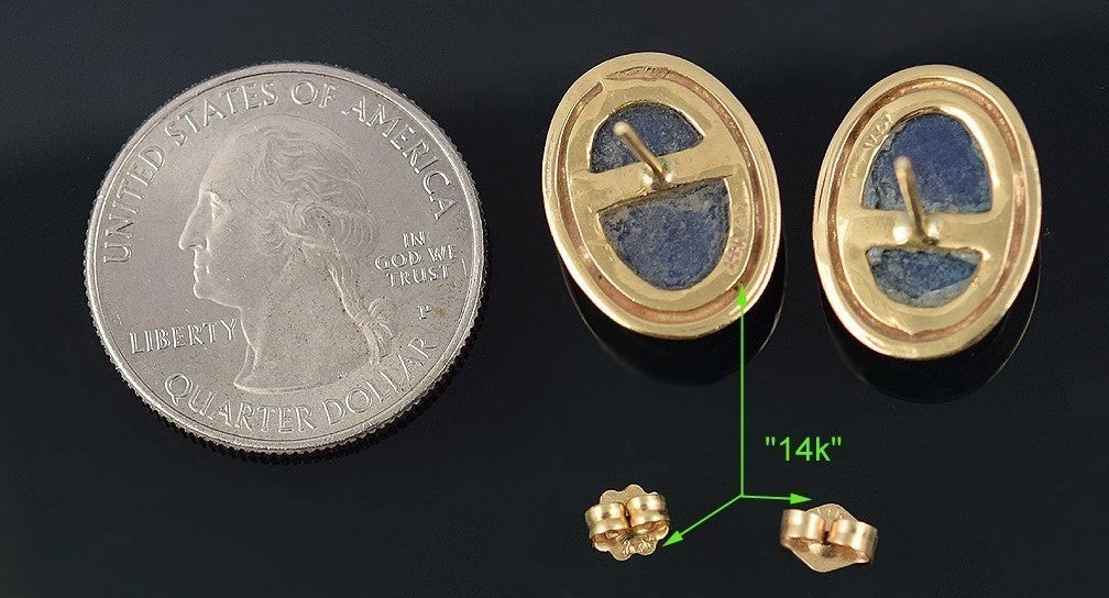 They are stamped 14k for the gold purity. They are all 14k yellow gold, tested and guaranteed. The lapis has been tested and verified as such by our certified gemologist.