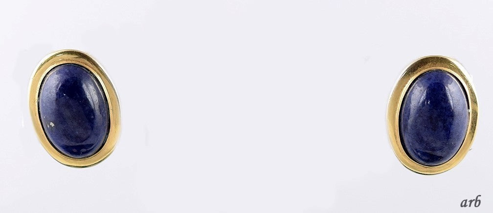Shining Vintage 14k Yellow Gold Blue Lapis Lazuli Cabochon Pierced Earrings