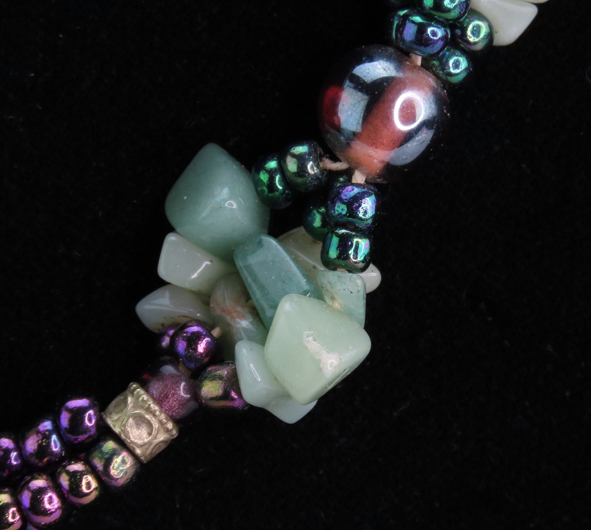Signed B. Marie Aventurine Coral Beaded Statement Necklace w Tuareg Cross