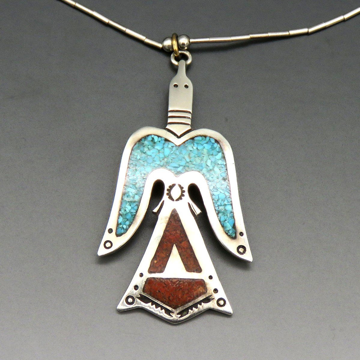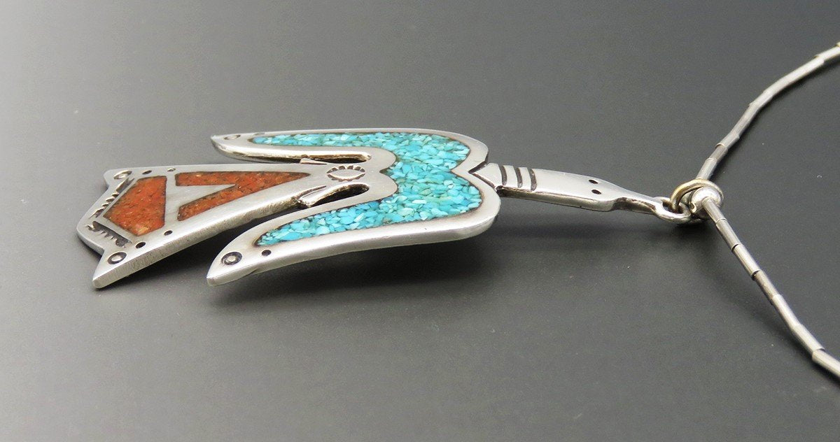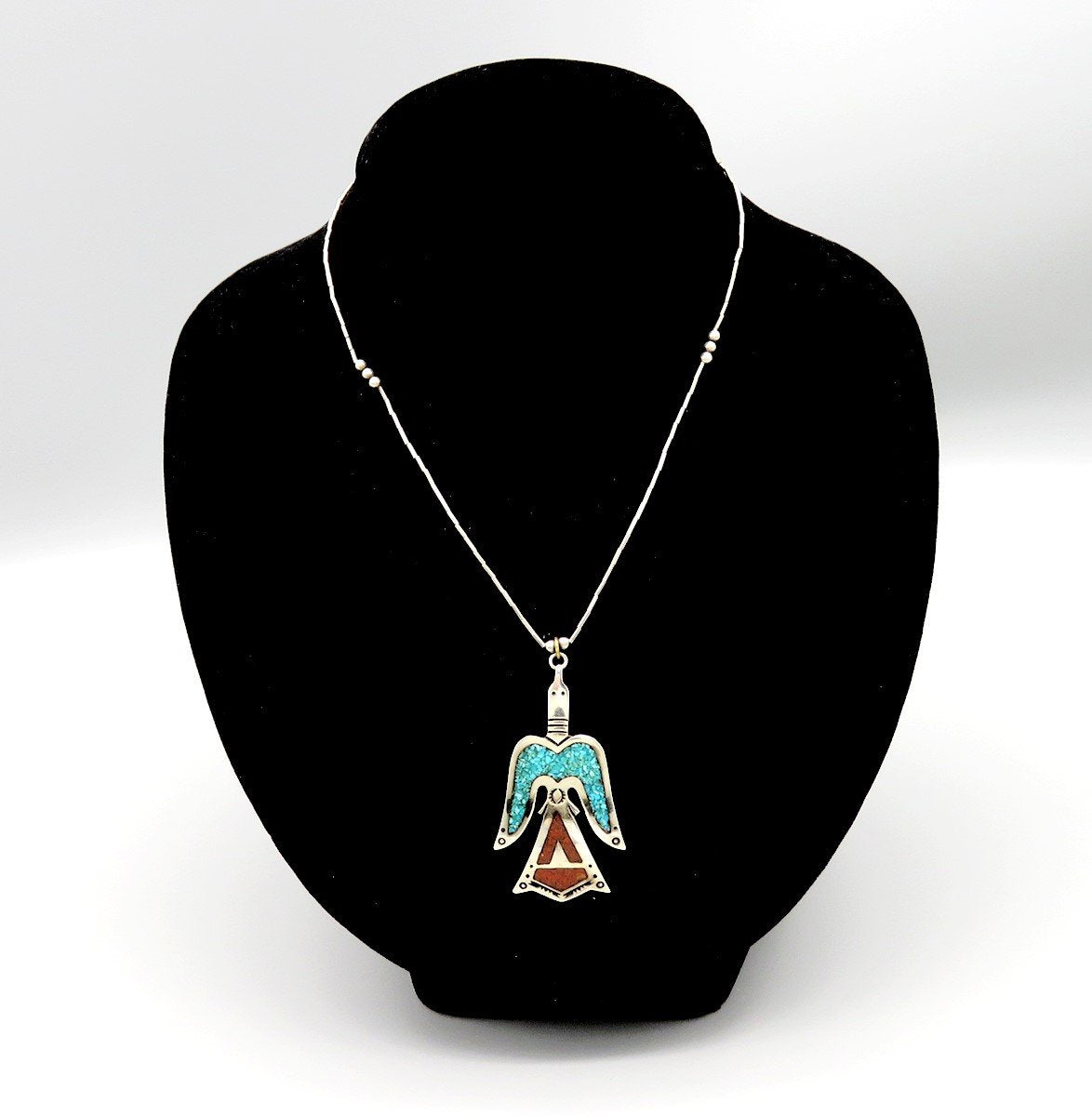 Southwest Native American Indian Sterling Silver Turquoise Bird Pendant Necklace