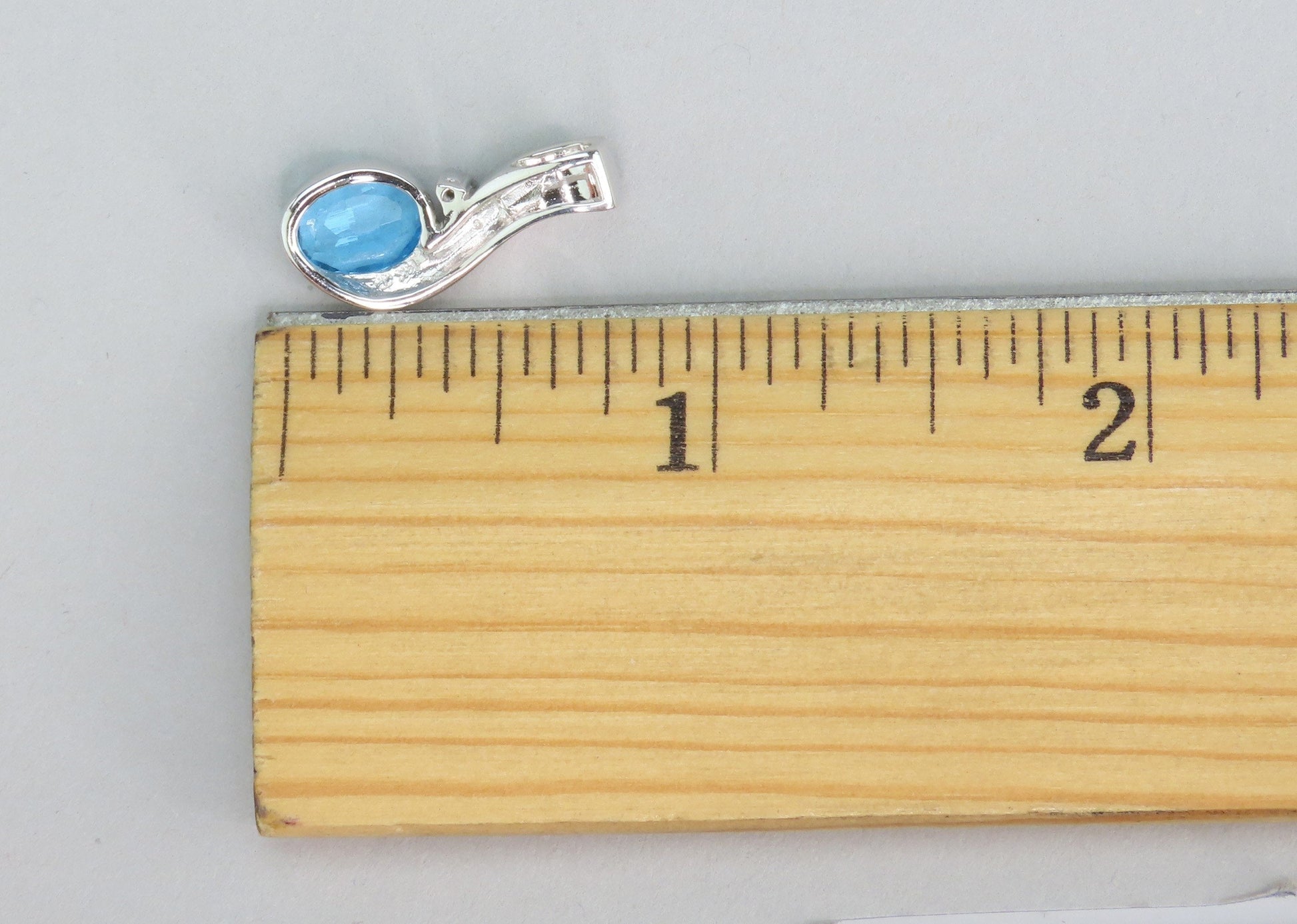 The pendant measures 3/4 of an inch long, and weighs 2.5 grams. -jm