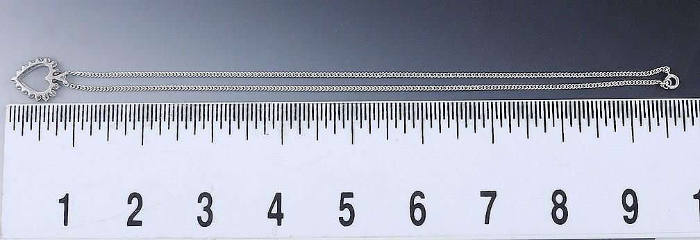 The chain measures 18 inches long and the pendant measures 7/8 inches long.