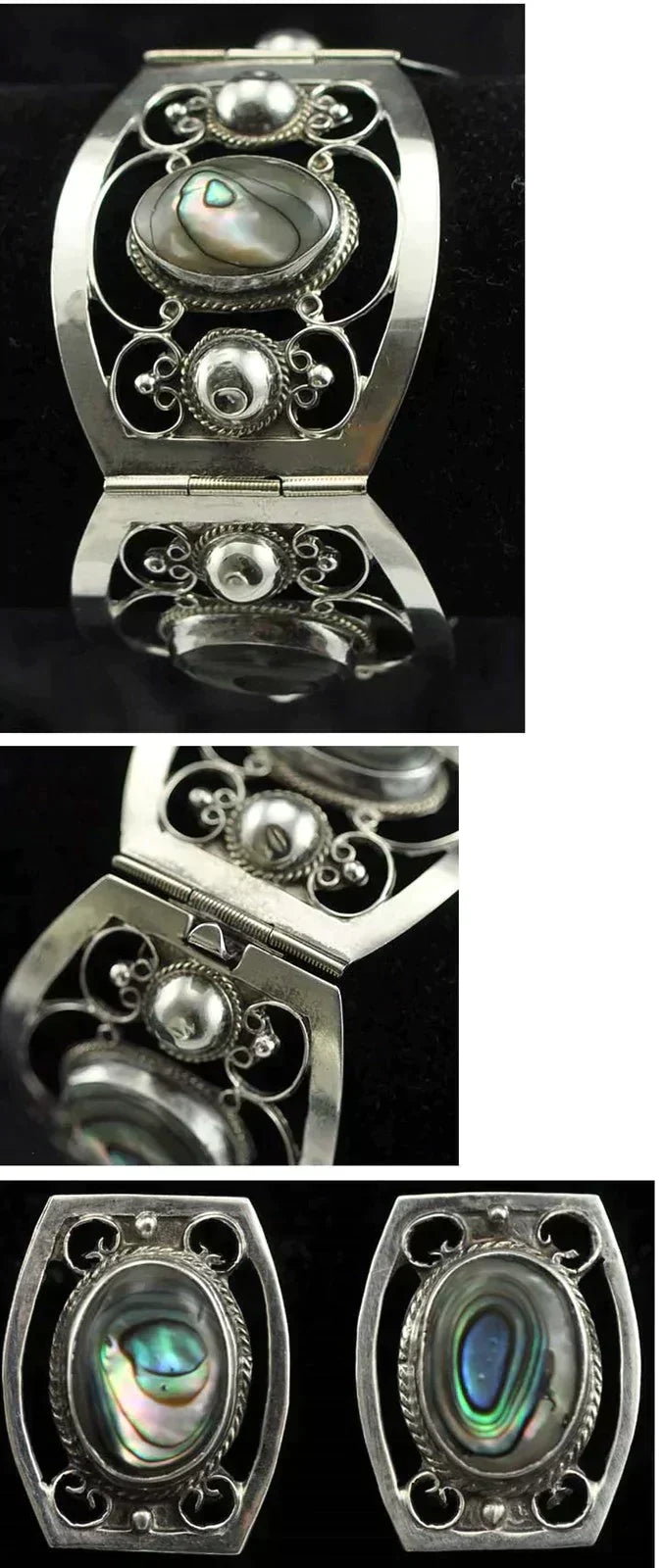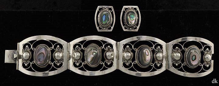 Sterling Abalone Mexican Bracelet and Screw-Back Earrings