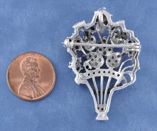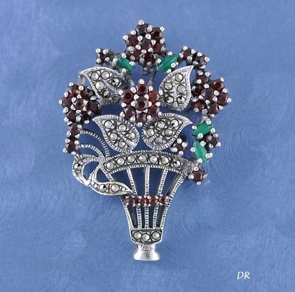 Sterling Garnet Marcasite Chrysoprase Rose Bouquet Pin