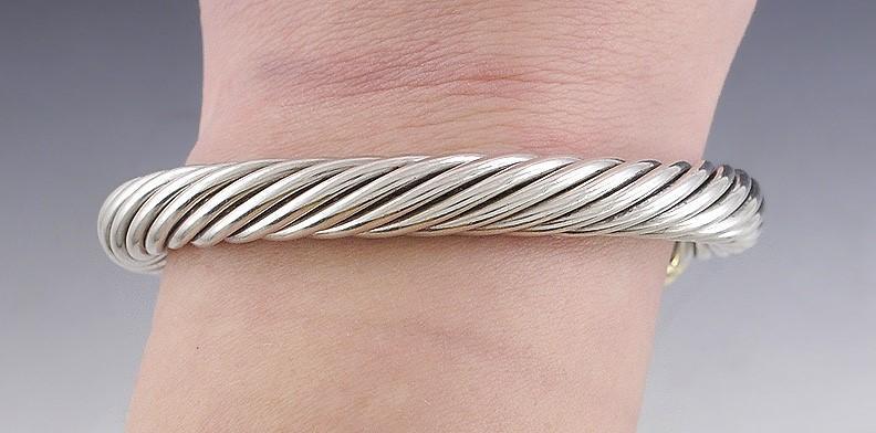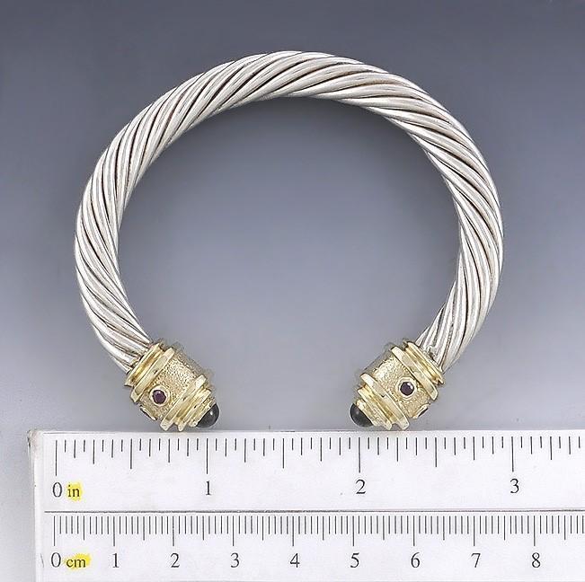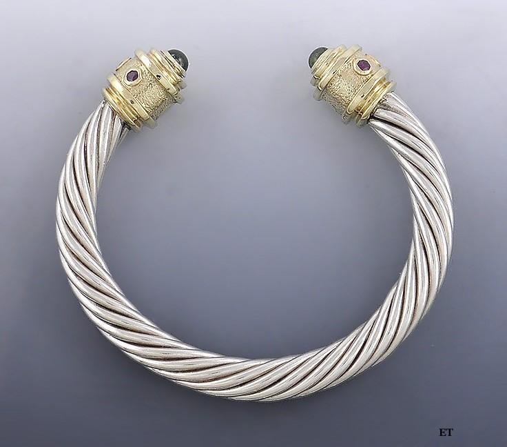 bracelet. The bracelet is done as a twisted sterling silver cable with 14k end