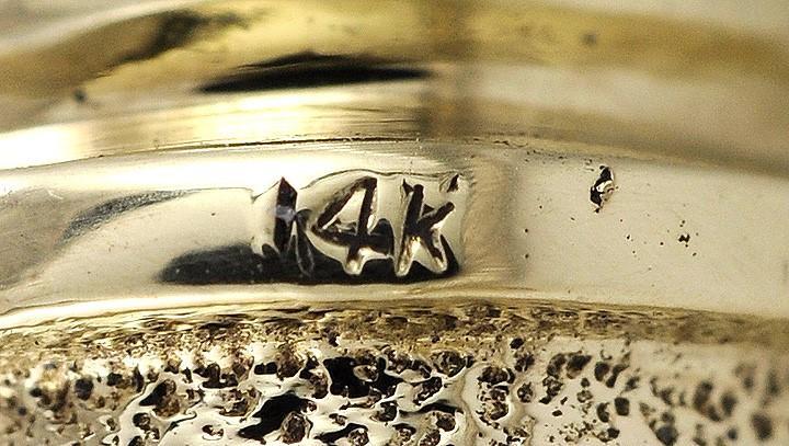The bracelet is stamped 14k on one of the end caps. The cable portion is
