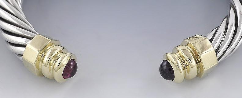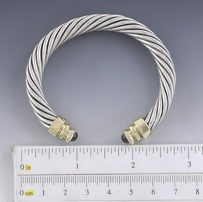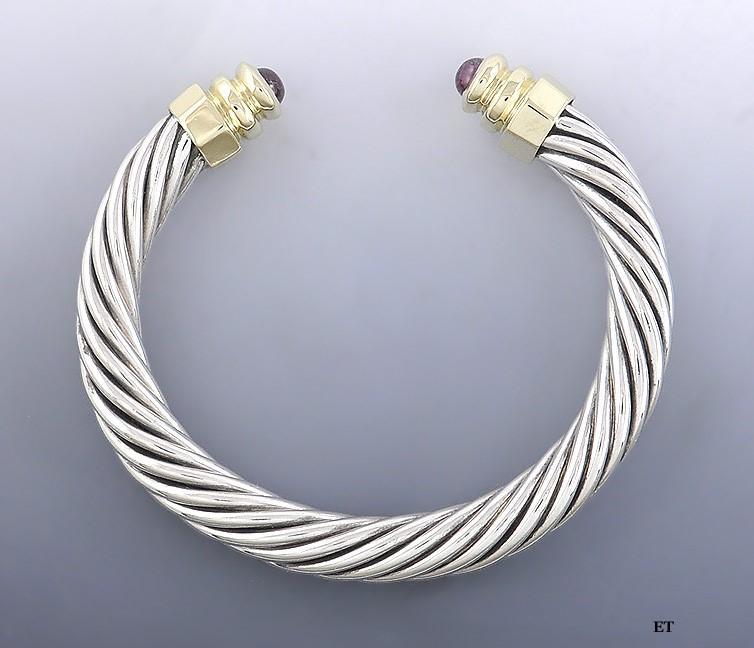 bracelet. The bracelet is done as a twisted sterling silver cable with 14k end